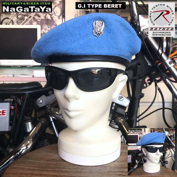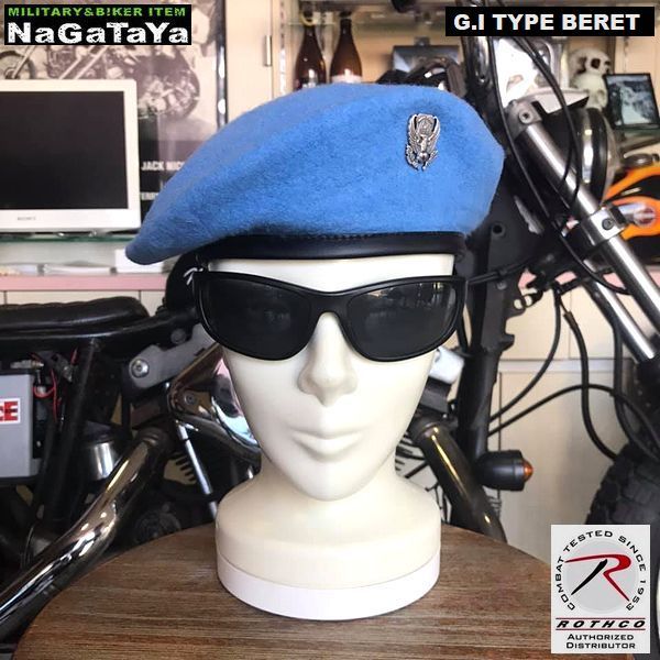 ROTHCO ロスコ GIタイプ 軍用ベレー帽 裏生地付 本物の軍章ピンズ付 ライトブルー 7 Sサイズ 平和 USA 国際連合軍カラー 平和