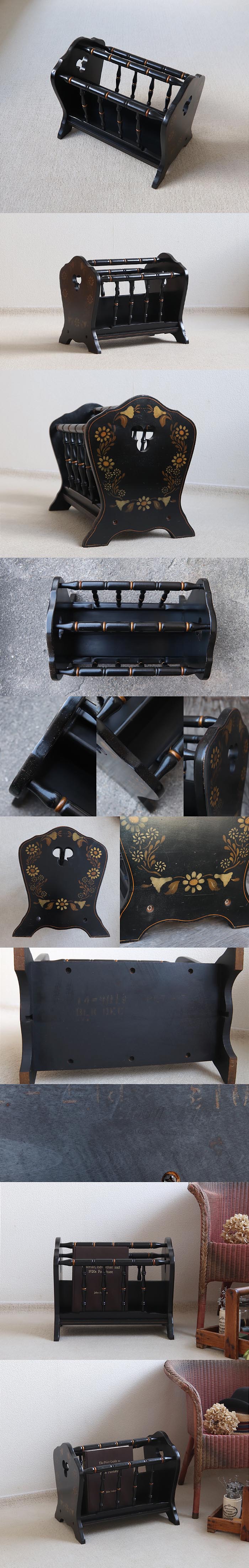 イギリス ヴィンテージ マガジンラック 木製 収納 マガジンスタンド 家具「可愛らしい花柄」T-787