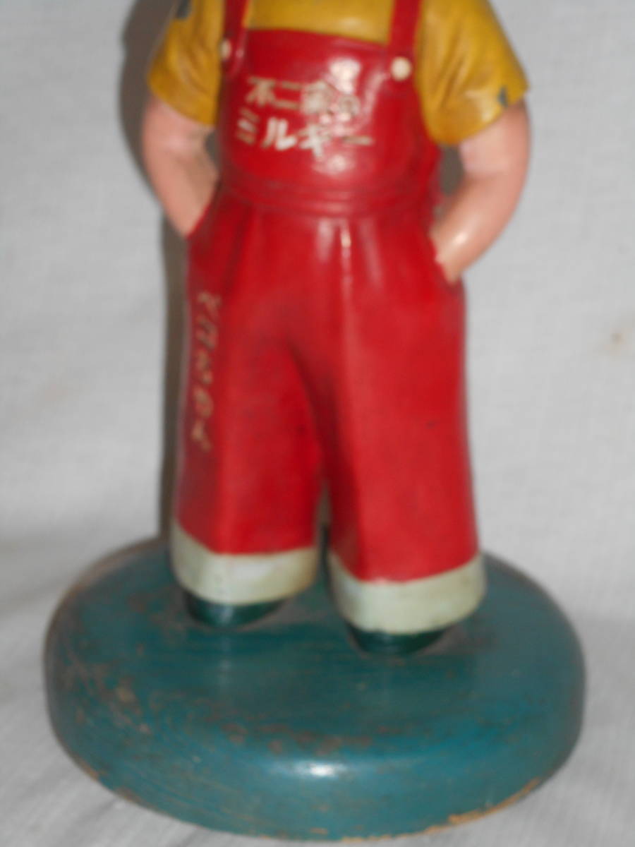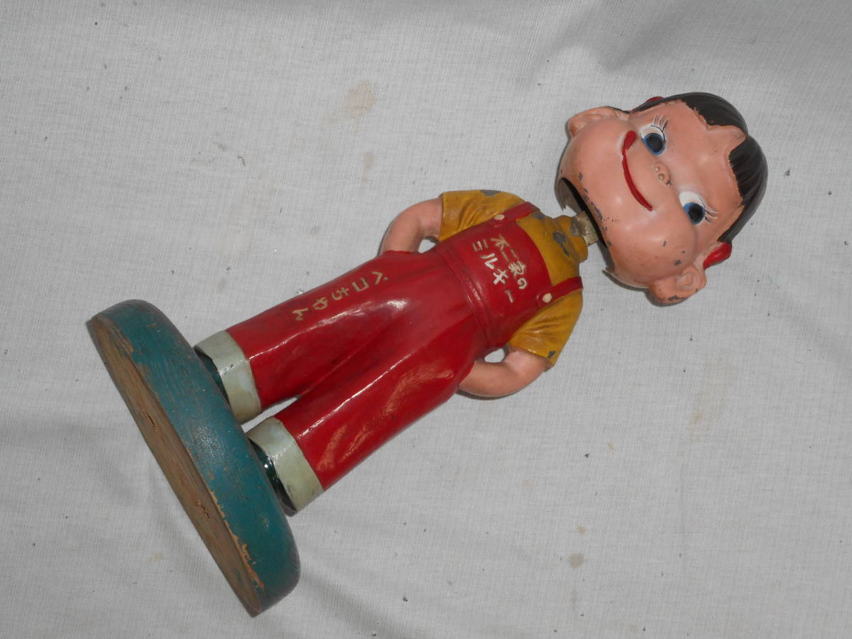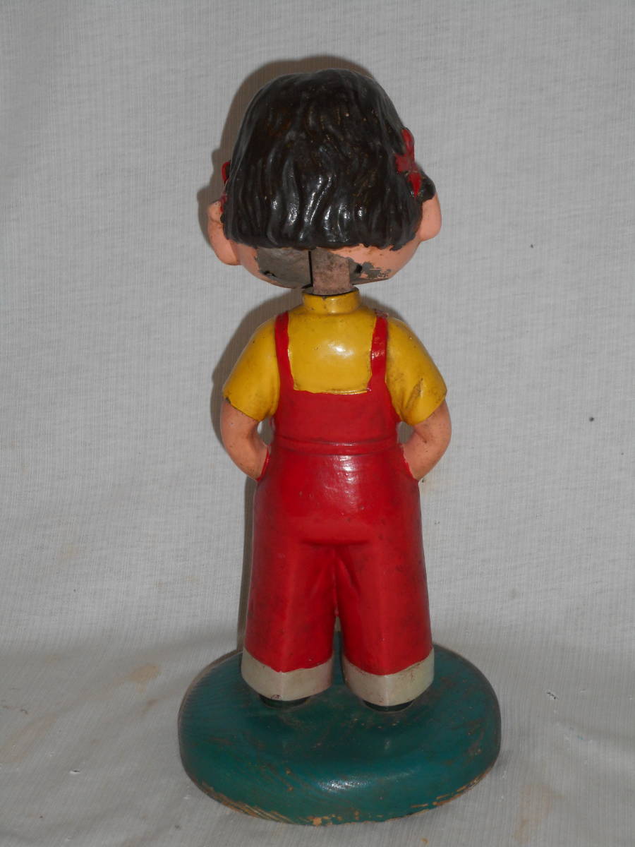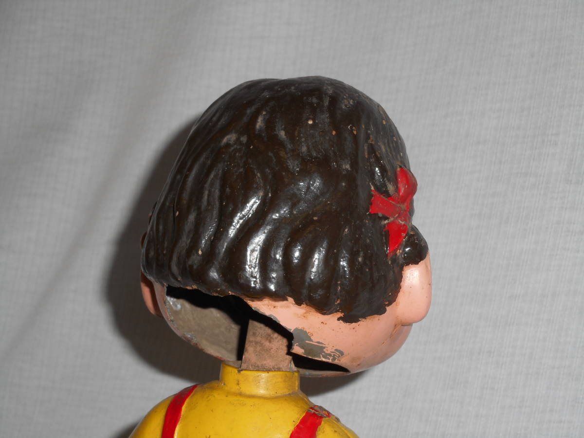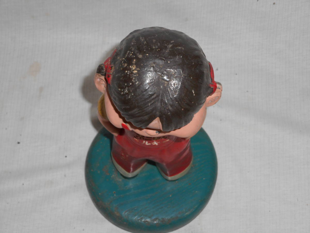 古い店頭カウンター人形6★アンチペコちゃん ・金属製・30cm・木台・ハカマ★不二家・当時物1950 企業物・非売品