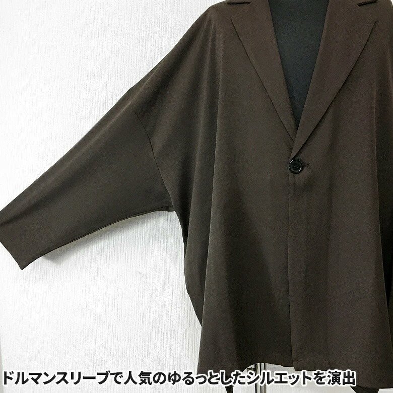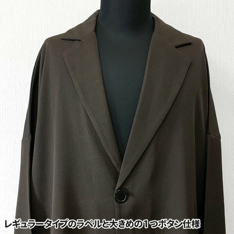さらっとした伸縮性のあるポリエステル素材を採用したソフトな印象のジャケット。 ビッグシルエットのシャツジャケットに動きのあるパンツの絶妙なバランスでトレンド感あふれる仕上がりです。 1ボタンに後丈を長めに取ったすっきりした丈感のジャケット、シンプルながら細部にまで拘りました。 カラーは、定番のベージュ、ブラウン、ブラックの3色展開で、 合わせるインナーやシューズでカジュアルから抜け感のあるきれいめスタイルまで幅広くコーディネートいただけます。 旬のセットアップスタイルはもちろん、それぞれ単品でも活用できるオススメのアイテムです。 ※同一商品を複数点お買い上げをご希望のお客様は、当店までお問い合わせください。 | ||||||||||||||||||||