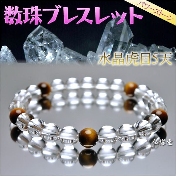 数珠ブレスレット【8mm天然水晶 虎目5天入り】ネコポス送料無料