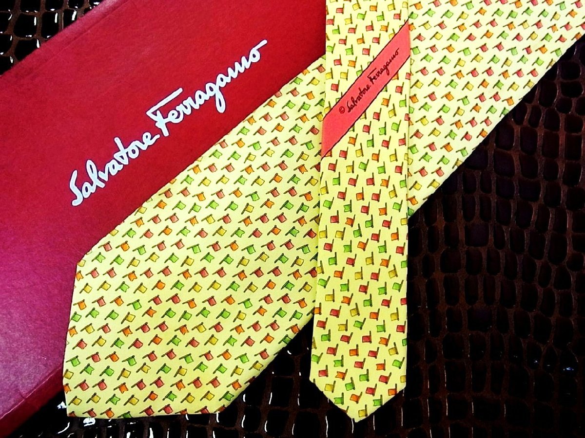 ★今週の特売★2041★高級ブランド【キャラ柄】★フェラガモ【旗 フラッグ 柄】ネクタイ★