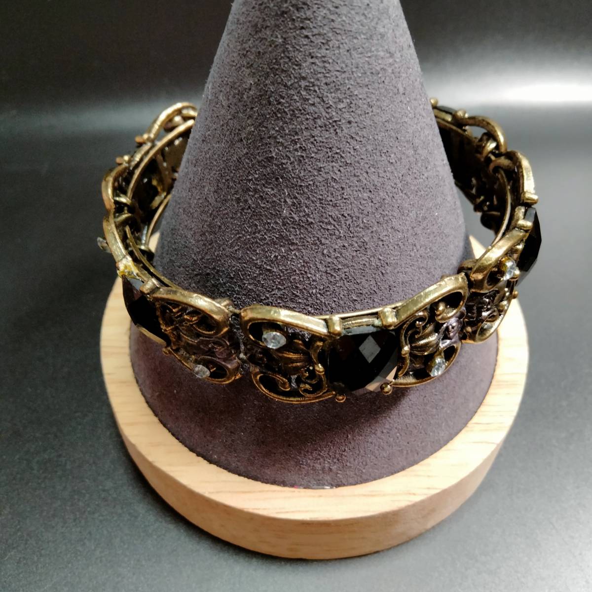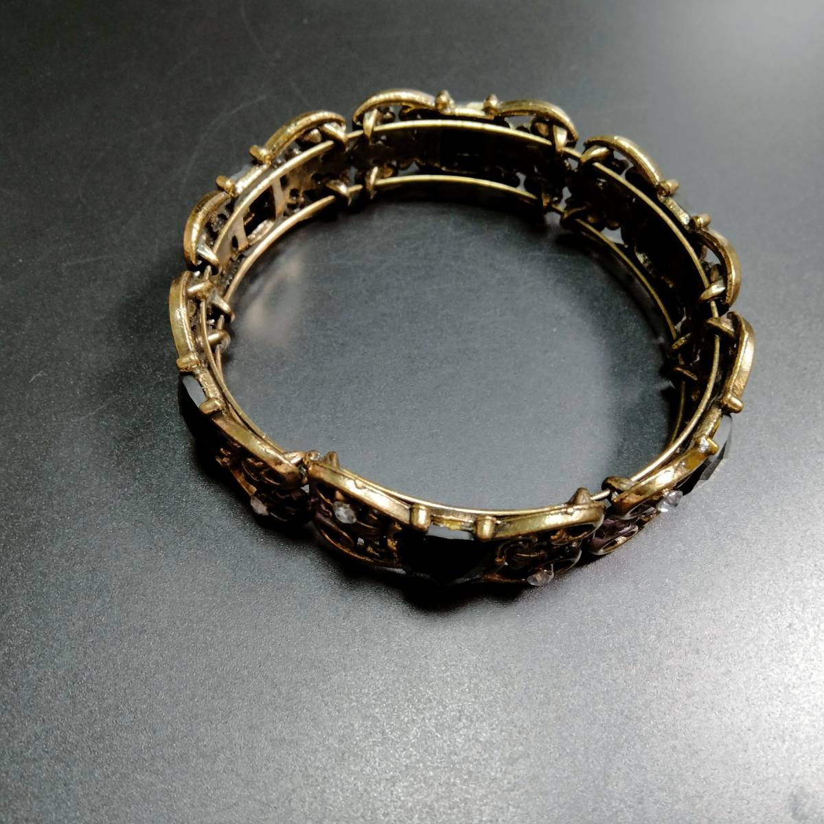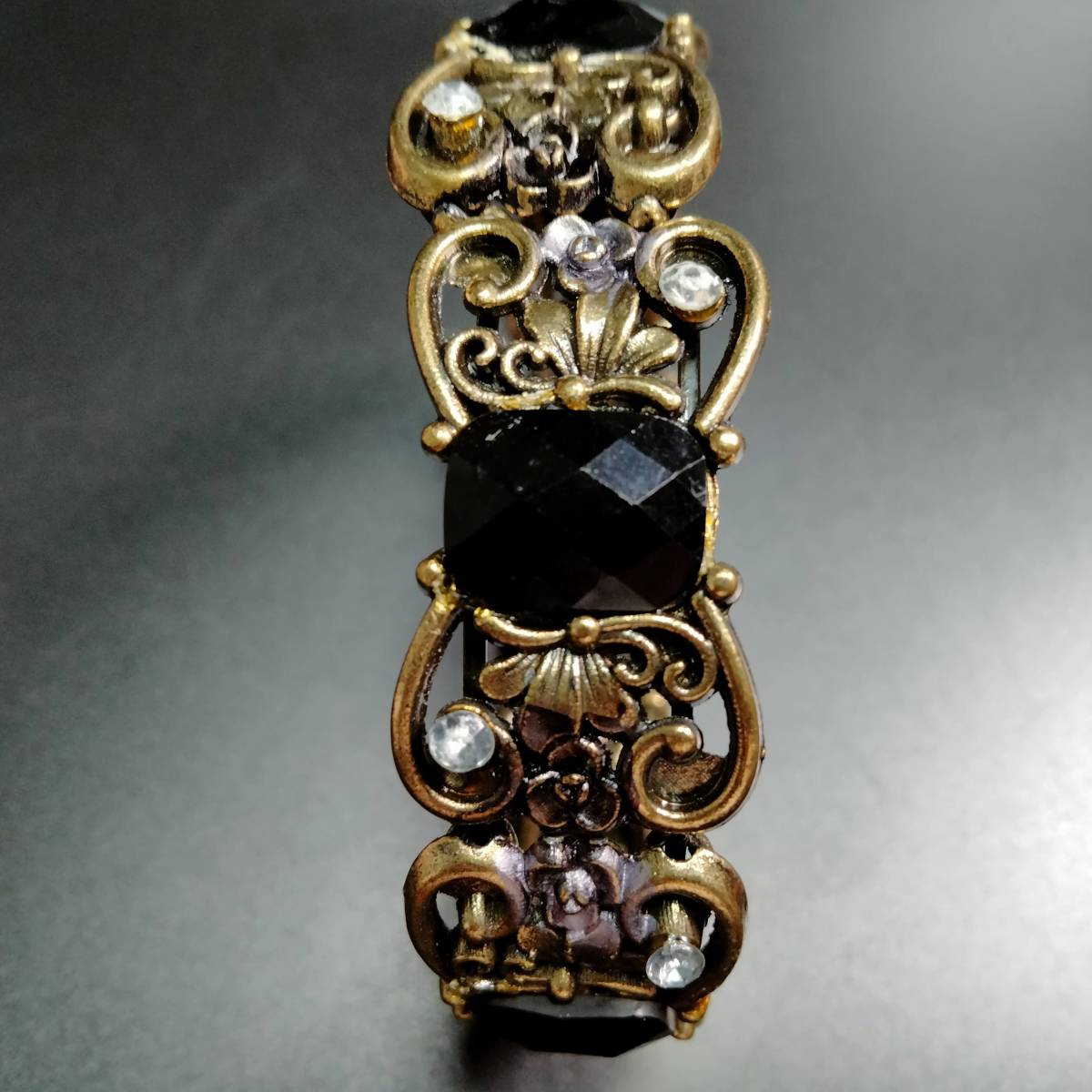 ビンテージ ブレスレット ブラック ストーン バングル アールデコ 昭和レトロ コスチューム ジュエリー アクセサリー SDAA67