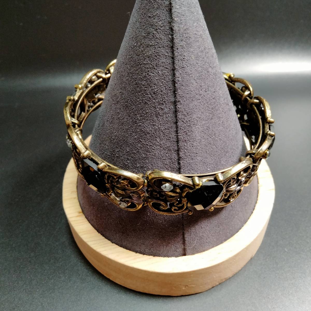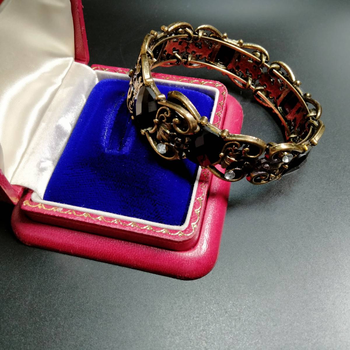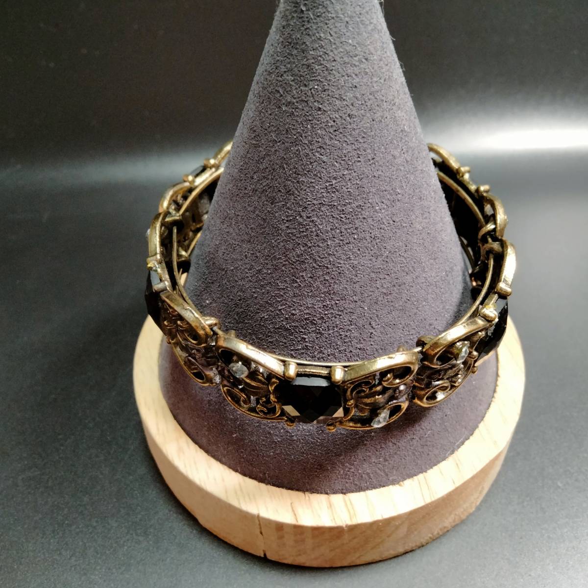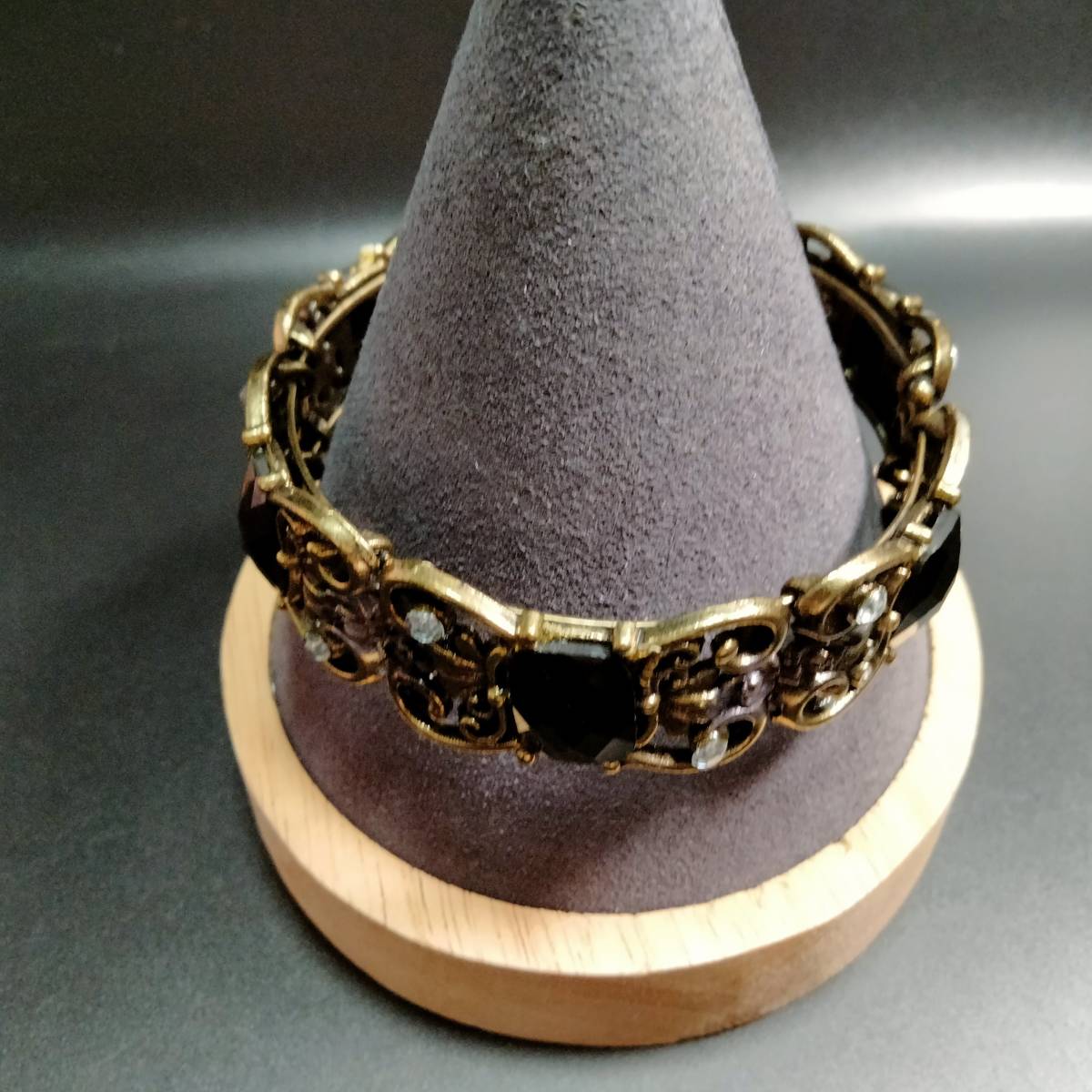 ビンテージ ブレスレット ブラック ストーン バングル アールデコ 昭和レトロ コスチューム ジュエリー アクセサリー SDAA67