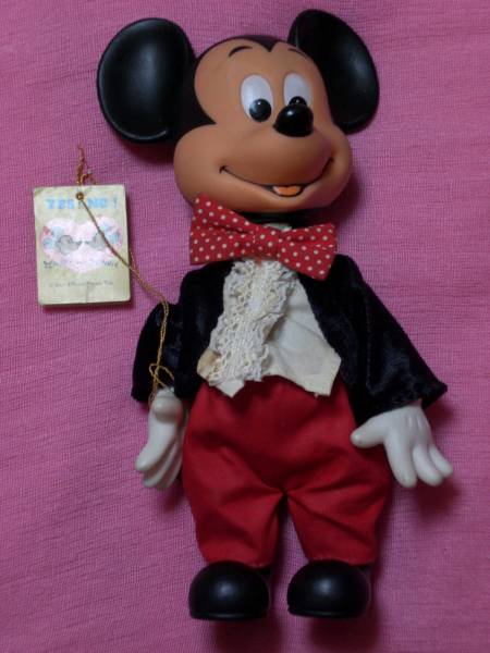 ☆商品説明☆ ご覧いただきありがとうございます^^ ディズニーキャラクター ミッキーマウスの人形です。1998年製。背中部分のボタンを押すと首を立てにふり、お腹部分のボタンを押すと首を横に振ります!レースのタキシードの服を着てと~ってもかわいいですよ^^ 大きさはタテ 約21cm、ヨコ 約11cmです。紙製のタグも残っています。たいへん古いものですがコレクション用として大切に保管していましたのでたいへんきれいな状態ですが白いレースの部分の白が一部茶色くなっていますのでご理解いただける方のみご入札をお願い致します。 ☆発送方法☆ 定形外郵便、ゆうぱっく ☆コメント☆ ノークレーム、ノーリターンでお願いします。ご不明な点がございましたらお気軽にお問合わせ下さい。他にもディズニーグッズたくさん出品しております☆ 良かったらご覧下さいね*^^*