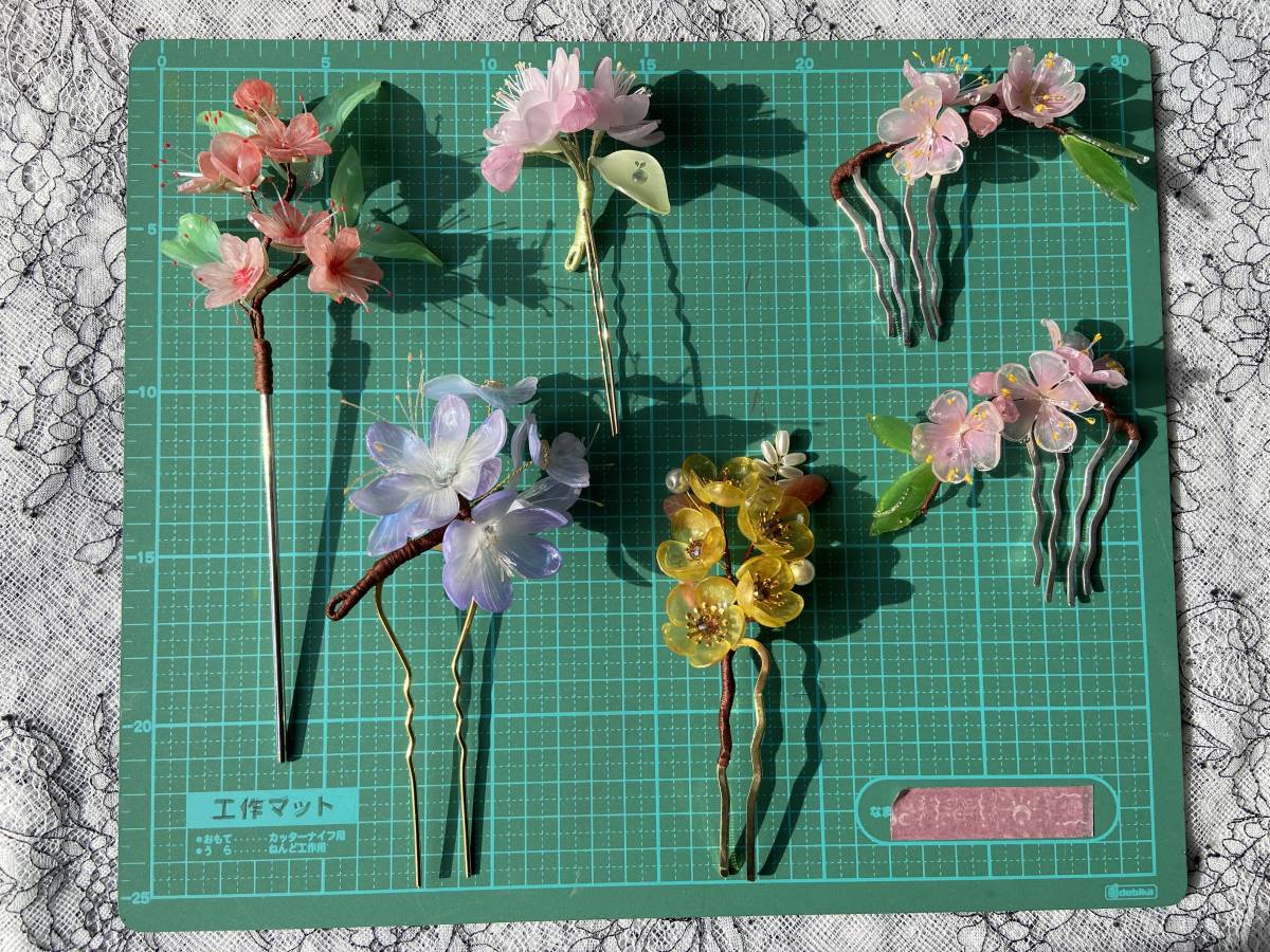 簪の付いていないものはUピンかヘアピンで自由に形を整えてお使いください。