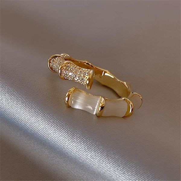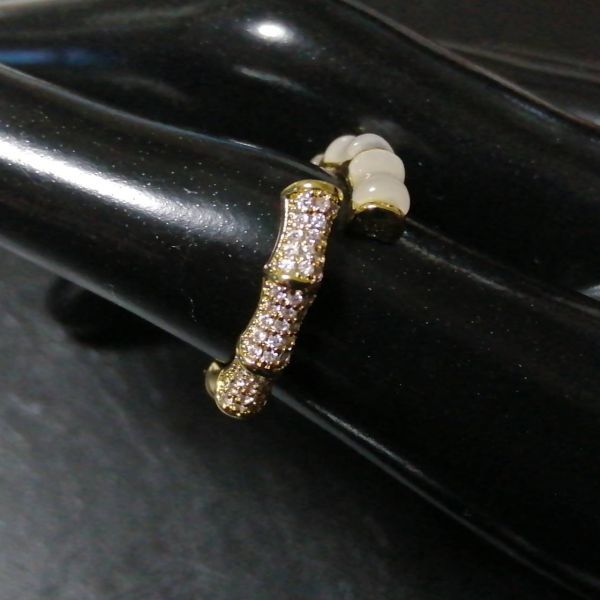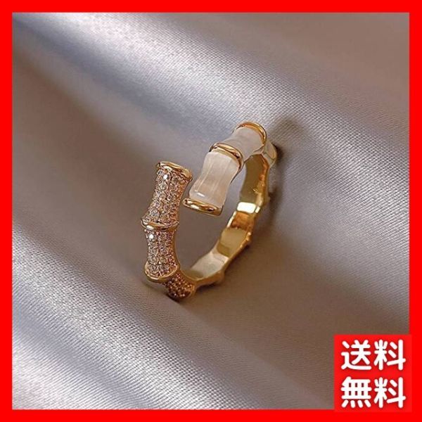オープンリング 指輪 ゴールド ラインストーン 竹 レディース 韓国 キラキラ 綺麗 ファッション ジュエリー ピンキー フォーク #C1701-2