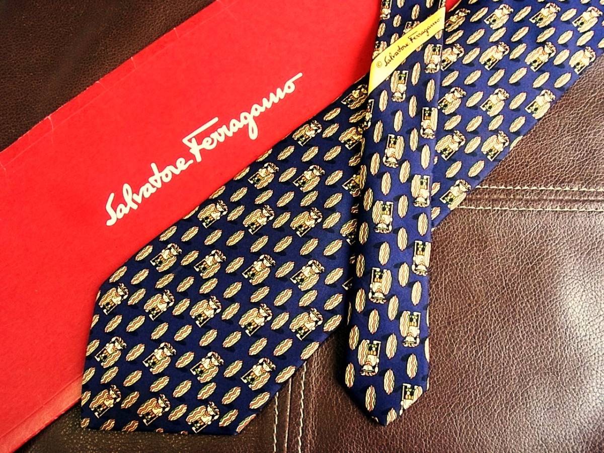 【在庫処分セール】5-6678z■フェラガモ【戦士・槍・盾】ネクタイ