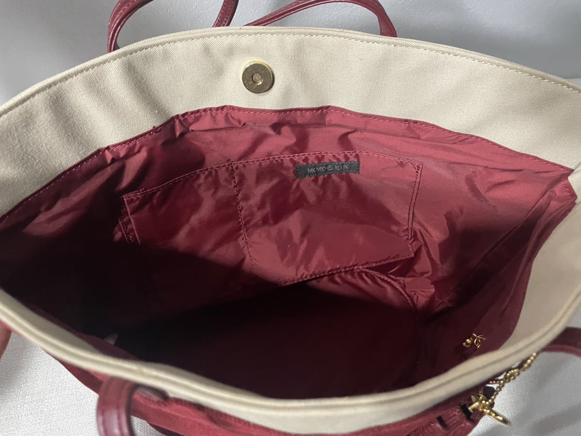 未使用美品MKミッシェルクランハンドバッグショルダー鞄赤レディース通勤通学仕事ビジネス旅行トラベル