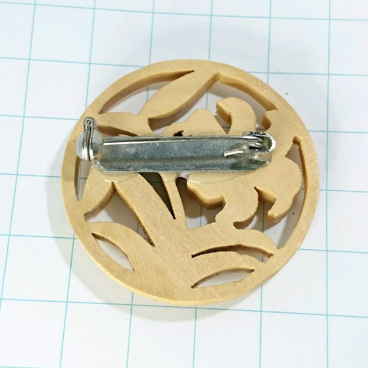 送料無料)ビンテージ☆木彫り工芸品 やまゆり☆アンティークブローチ A13714