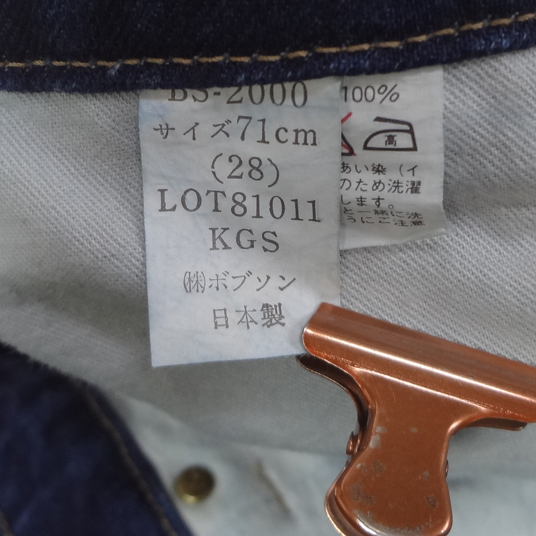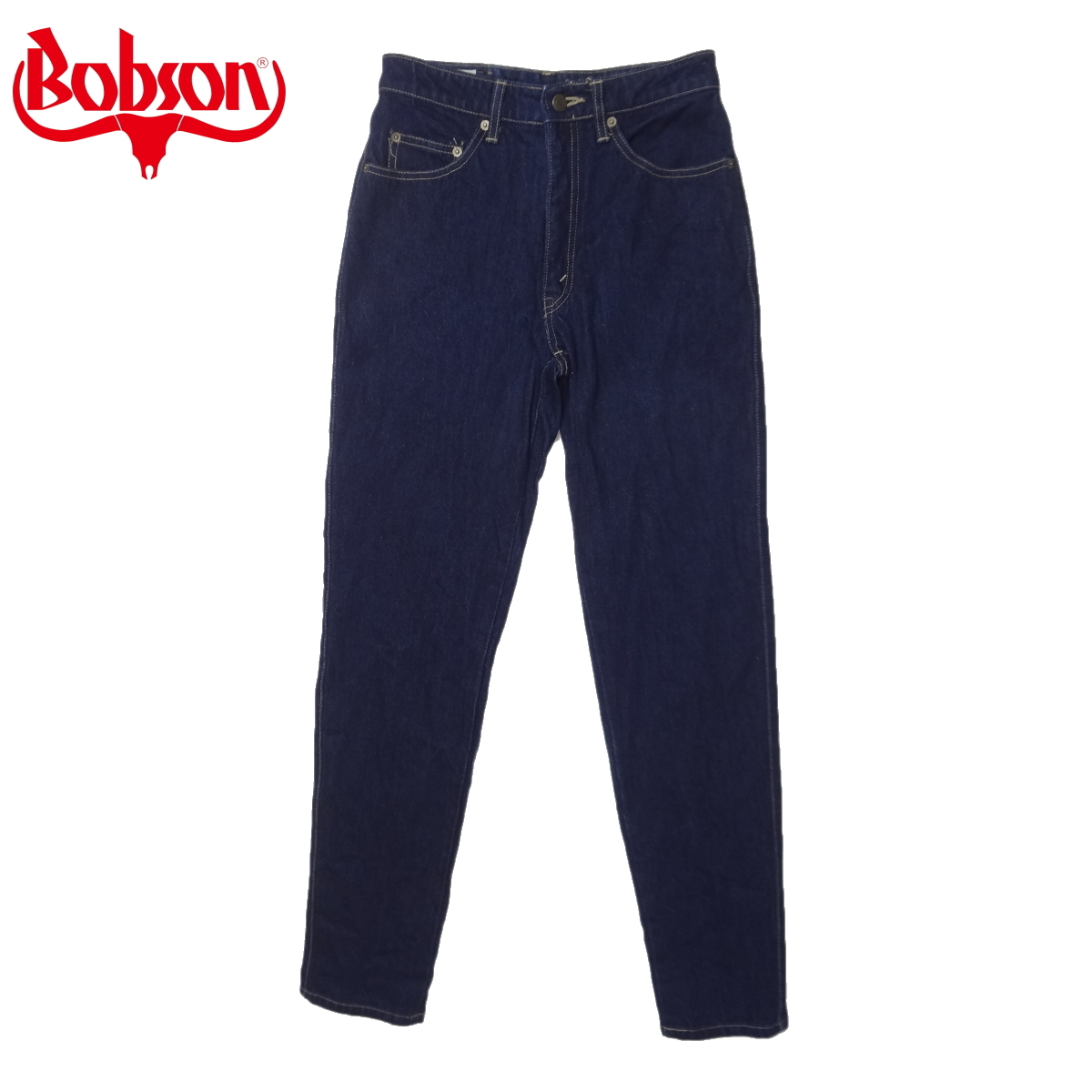 ボブソンBOBSONの日本製スリムジーンズ、実店舗の店頭展示品を1度洗濯しただけの未使用品、綿100%、レア物、ブルージーパン、Gパン