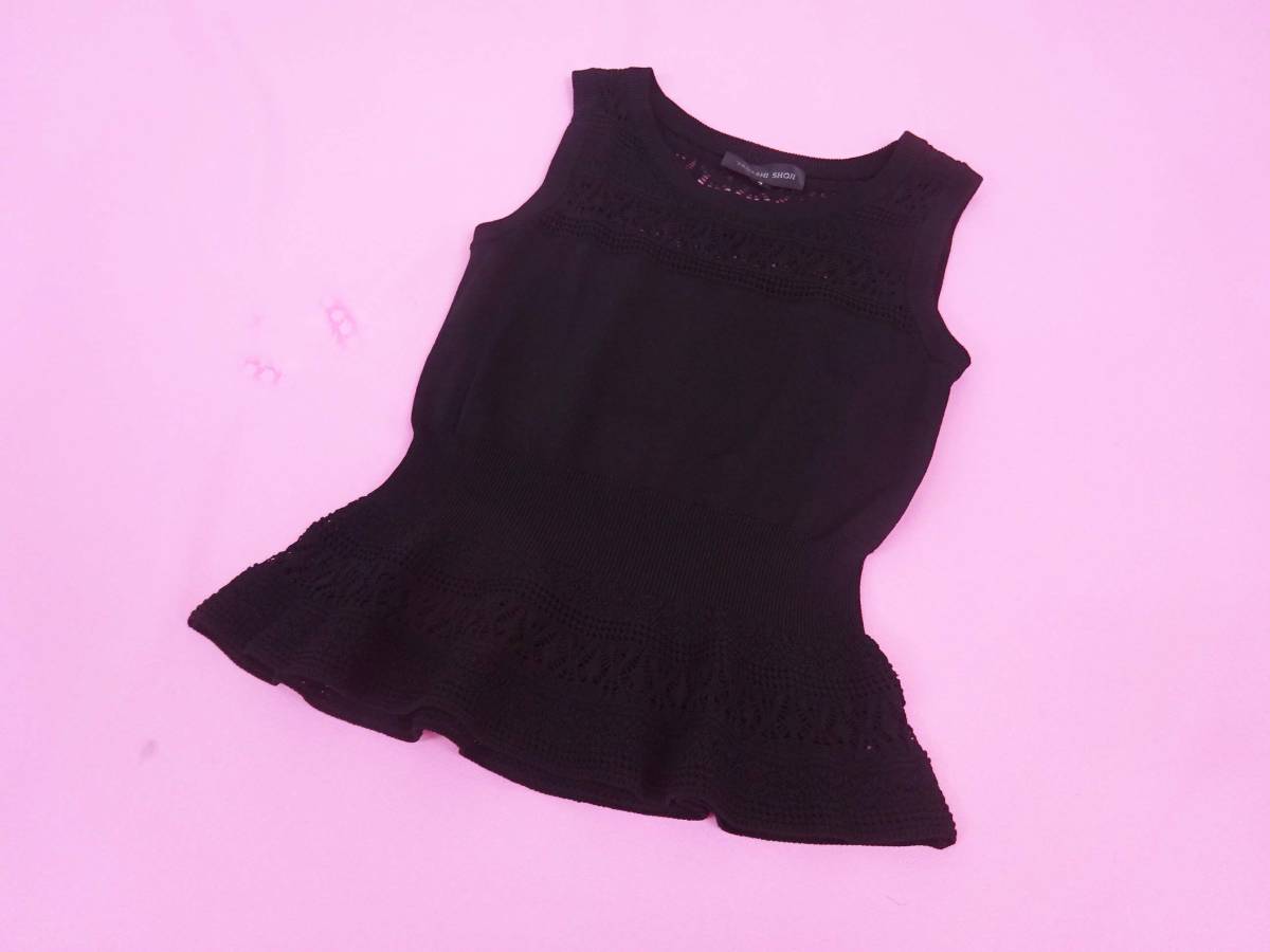『  TADASHI SHOJI 』 タダシショージのレース編み ペプラムニットです♪ ノースリーブで、ウエストを絞って腰に向けて広がるペプラムのデザインがとっても女性らしいシルエット。