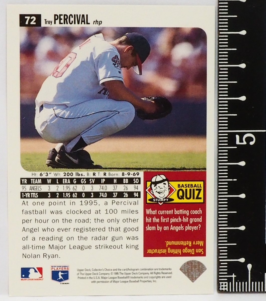 1996 Upper Deck Collector's Choice #72【Troy Percival(Angels)】96年MLBメジャーリーグ野球カードBaseball Cardアッパーデック 送料込