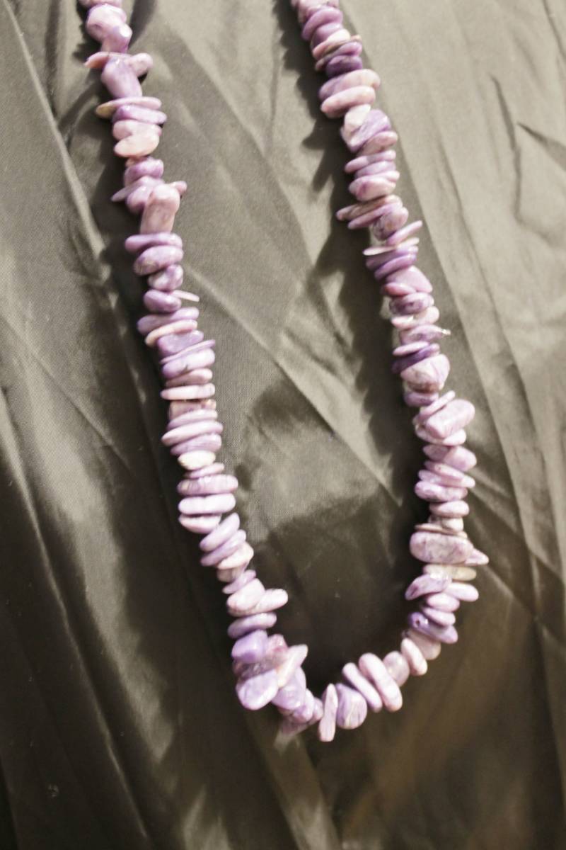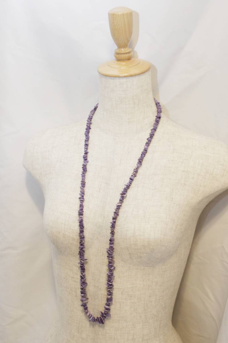 希少品 ヒーリングストーン チャロアイトネックレスの出品です。 チャロアイトは、ラリマー、スギライトと並んで「世界三大ヒーリングストーン」としても有名です。 品質の良いロシア産のチャロアイトを使用したネックレスを出品致します。 ・生命の強さ ・自意識の投影 ・美しさ・清らかさ という3つの意味をもった石で、ヒーリング(癒し)効果の高い石をふんだんに使用して作られております。 チャロアイトという石自体ヒーリングや儀式、お守りなど用途の多い大変人気の石で、手に入らないことも多い天然石です。 パワーストーン(天然石)の中でもヒーリング効果の強い石であり、その石の中でも産地を厳選して品質の高い石を使用したネックレスなので、人によっては効果が強すぎる場合もありますので、着用に慣れないうちの車の運転などはお控えください。 とても作用の強い石なので、現状を打破しようとする人にパワーを与えてくれることでも有名です。 ぜひチャロアイトを身につけてみてください。 浄化方法は以下です。 ①少量の流れる水にさらす ②月の光を浴びさせる ③ホワイトセージの葉に火をつけ煙に数回くぐらせる ④水晶クラスターの上に置いておく 長さおよそ90cmの大変長い、ふんだんにチャロアイトが使われているネックレスになります。 太さは一番太い場所でおよそ1.5cm。細い場所で1cm程度になります。(石の箇所で測定) 送料はこちらで負担致します。 宅急便コンパクトでの発送となります。 個人出品の為、神経質な方のご入札はご遠慮頂けます様お願い申し上げます。 ご理解頂ける方のご入札をお願い致します。 |