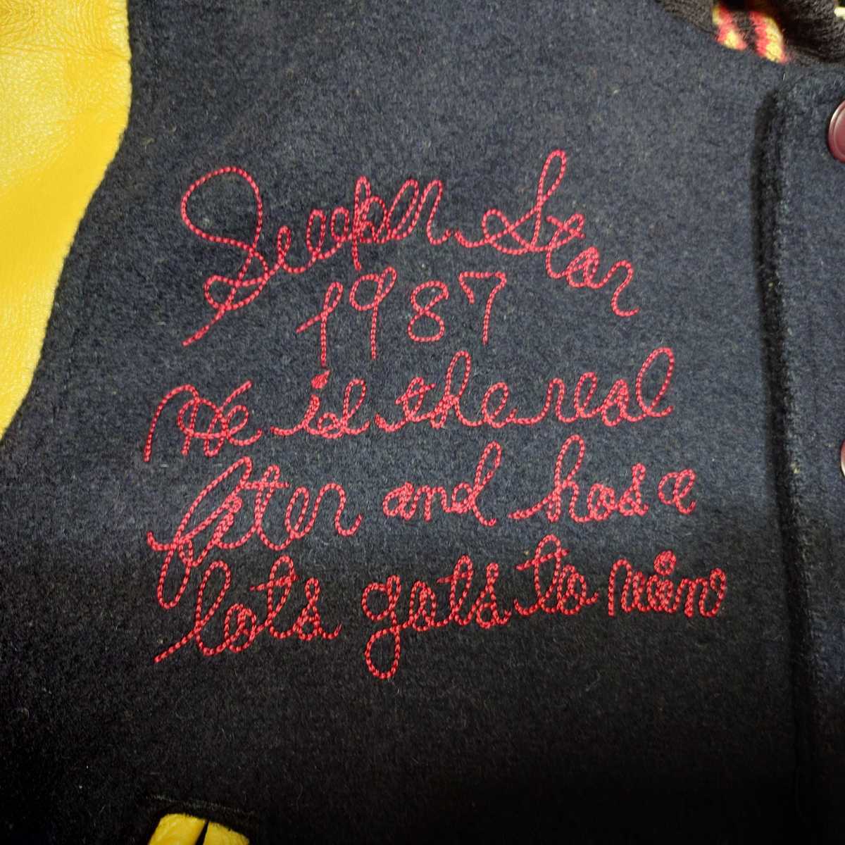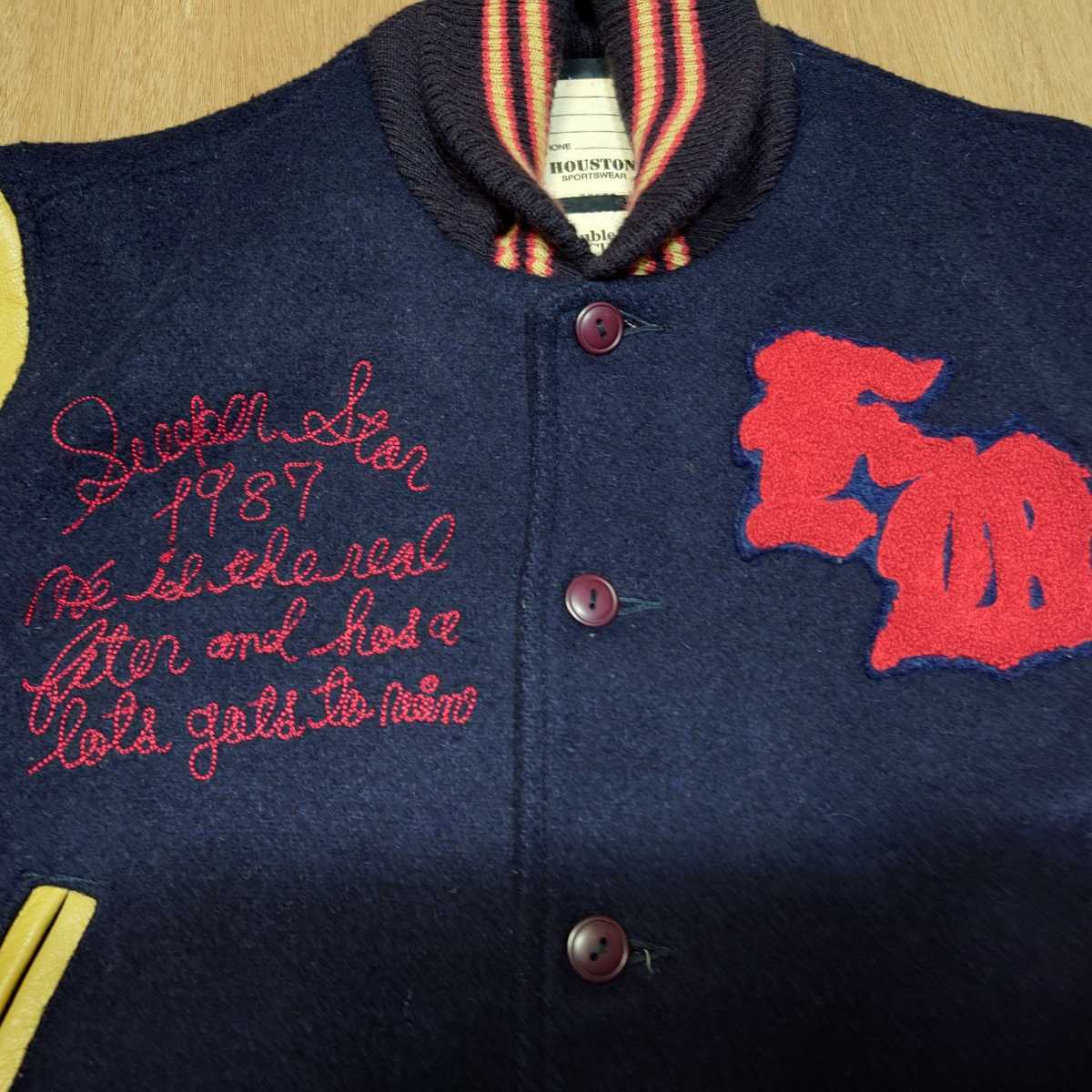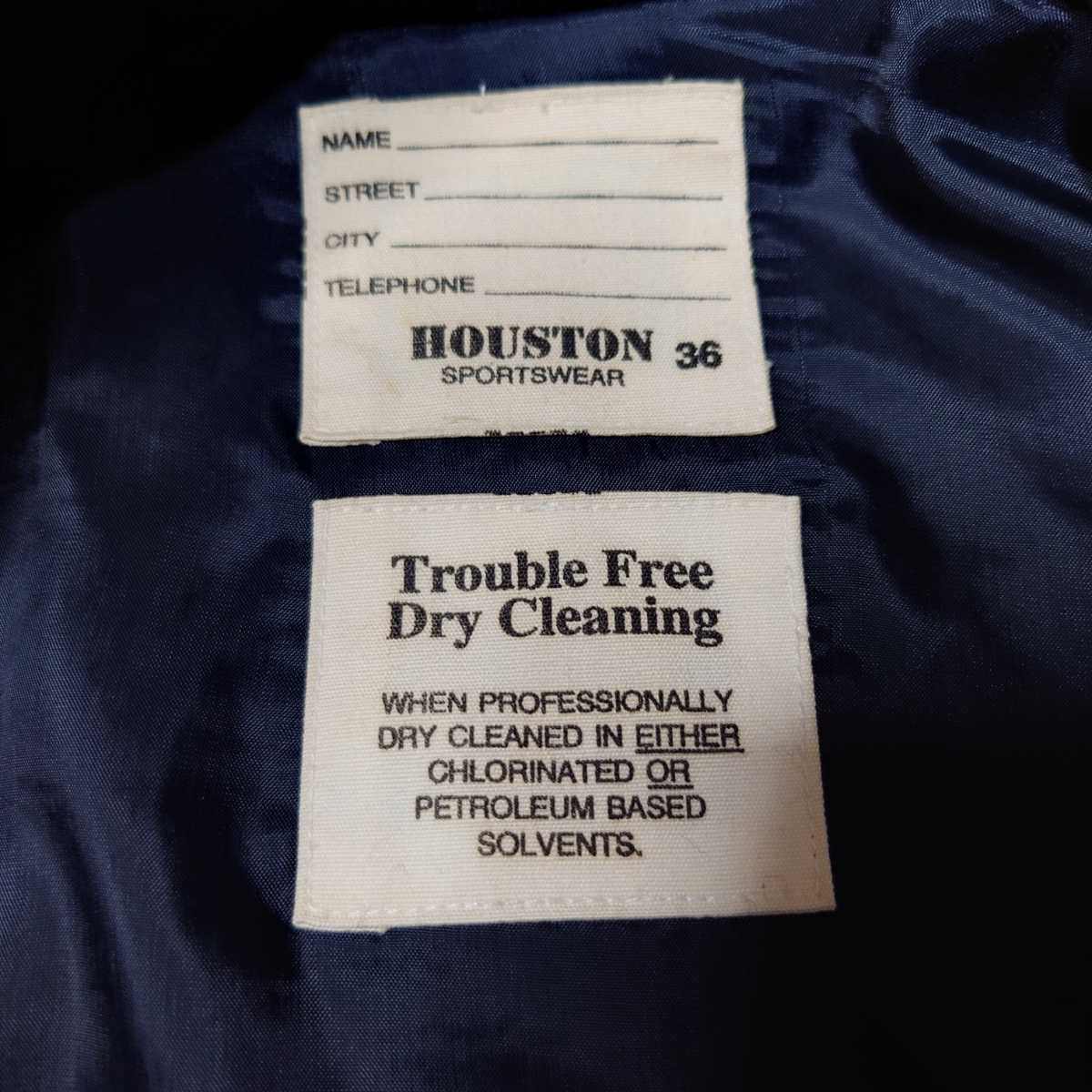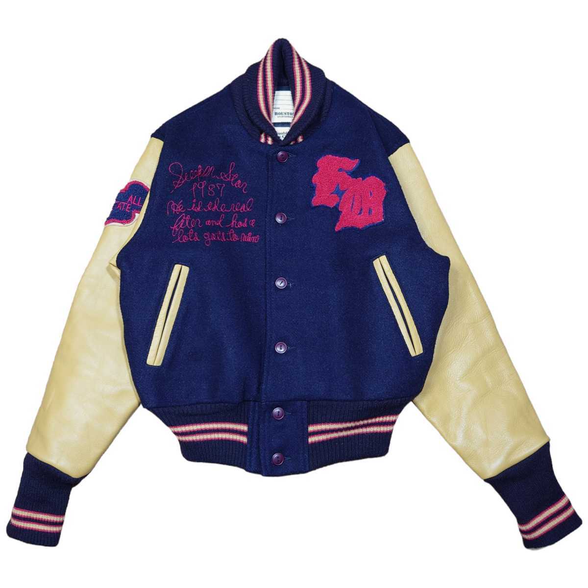 HOUSTON インディアンヘッド ビッグロゴ刺繍 袖レザースタジャン 古着