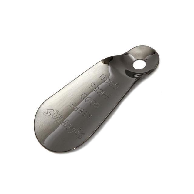 商品説明 | 真鍮製の携帯用靴ベラです。サムティアスの刻印入りで、シックな雰囲気。軽量で薄いので持ち歩くのに適しています。厚みは約1mm。かかとに沿うなめらかなカーブ。上部の窪みがフィットするので持ちやすく使いやすい!キーホルダーに通してお使い頂くこともできます。 |
