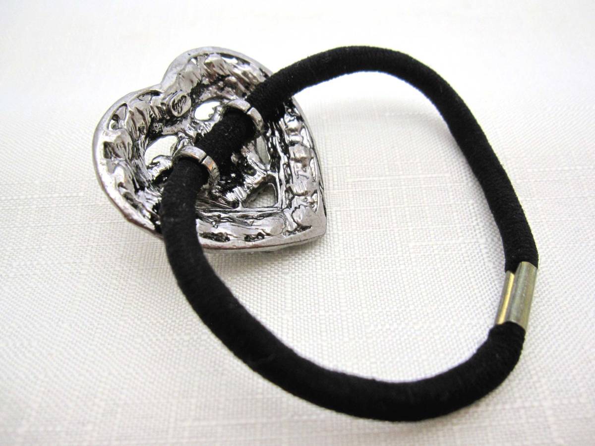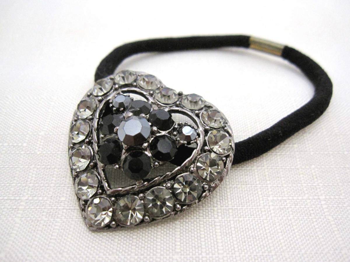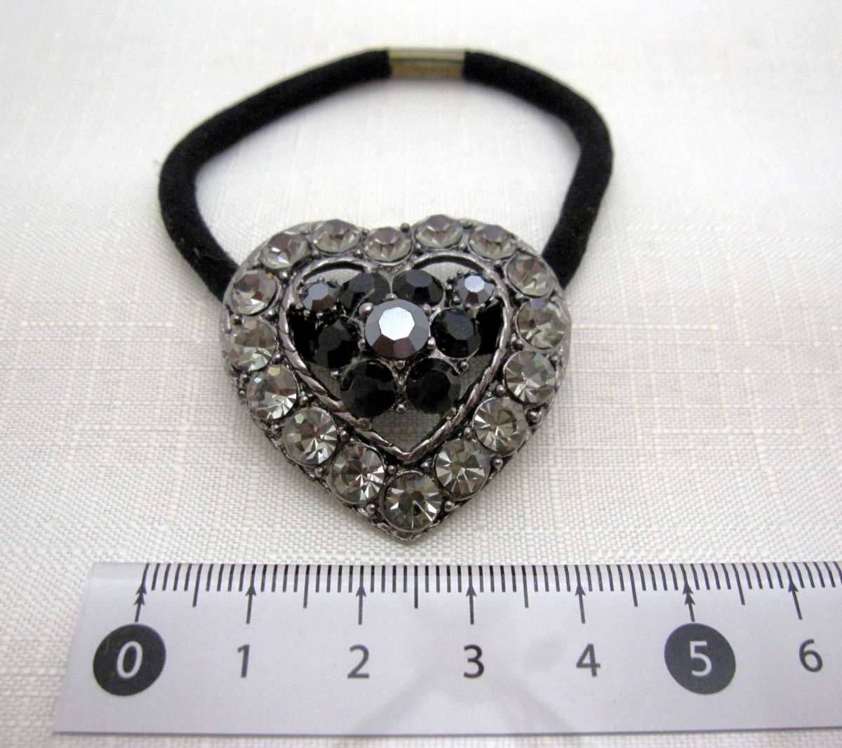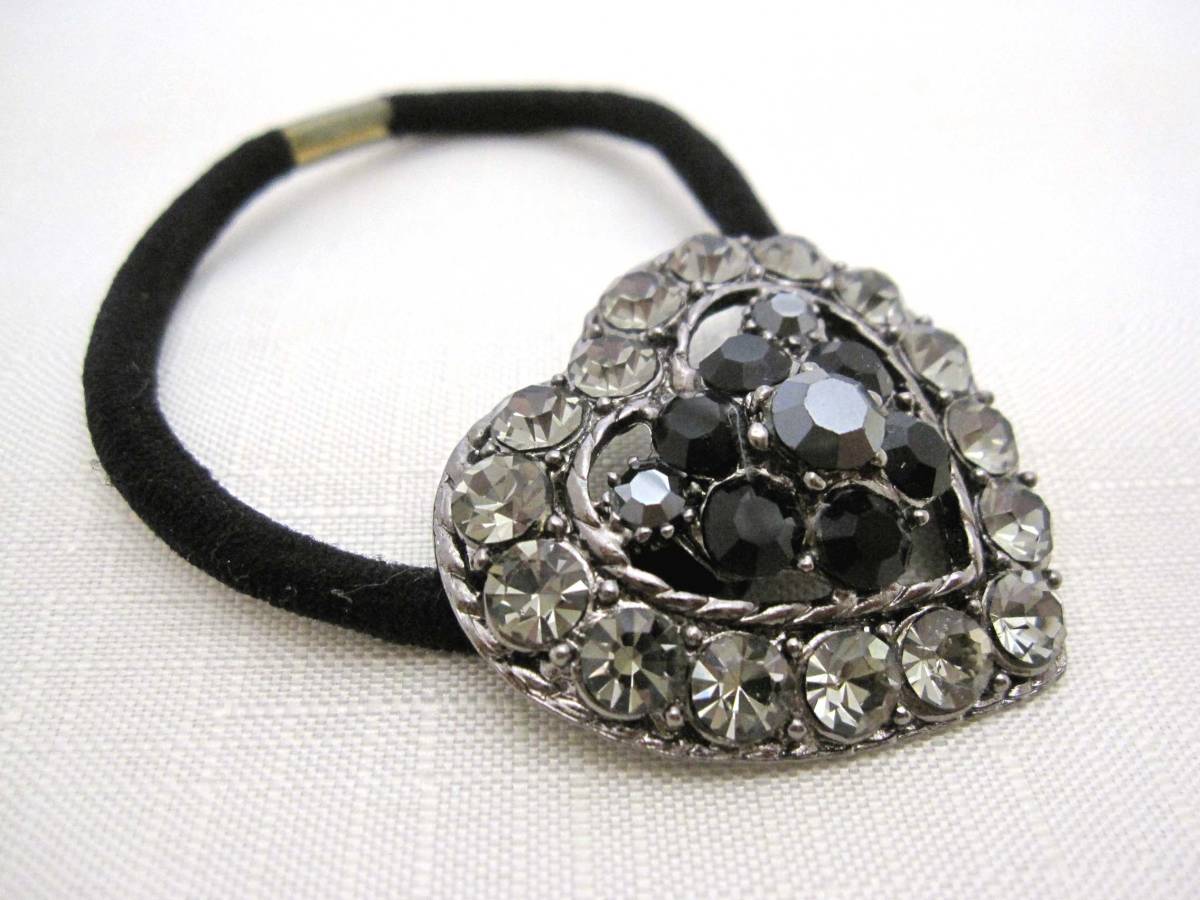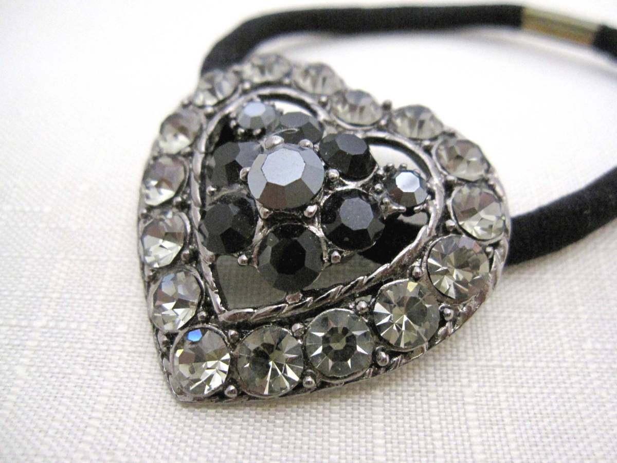 美品 ヘアゴム ブラック系 ヘアアクセサリー*きらきら*髪飾り*和装*女子会*夜会巻*スワロ*ハート<220919-3>