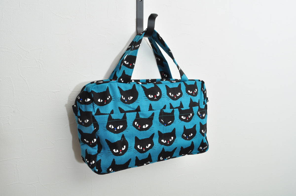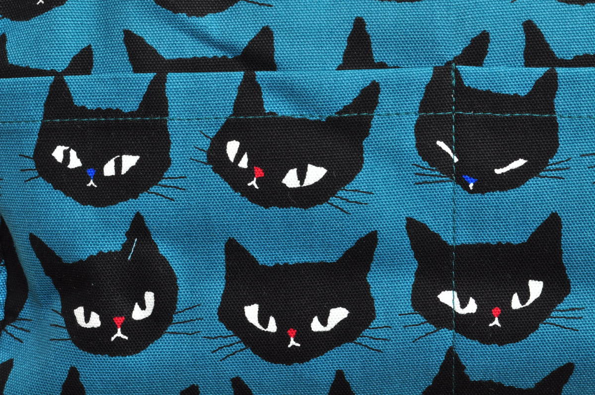 くろねこ の生地(オイルクロスではありません)を外側に、キャスドット柄のコットン生地を内側にあしらって、作りました。オイルクロスではありませんので軽く独特の温かみをお楽しみください。もっと作って欲しい~というお声にお答えして再度作りました♪今回は写真でも分かっていただけるかと思いますが、外側にもポケットを付けていますので、デスクの上に置いて、ペンたてやアイフォン入れにも♪