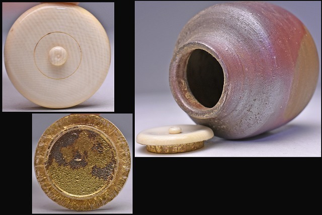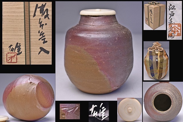 藤原雄 ★ 備前茶入 ★ 共箱栞 仕覆付き ★ 江戸和久田 ★ 備前焼 の 人間国宝 ★ 父に 藤原啓 ★ 子に 藤原和