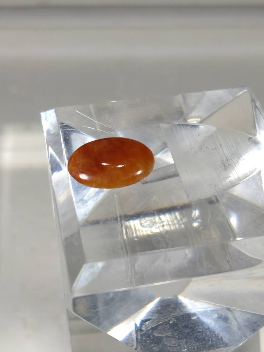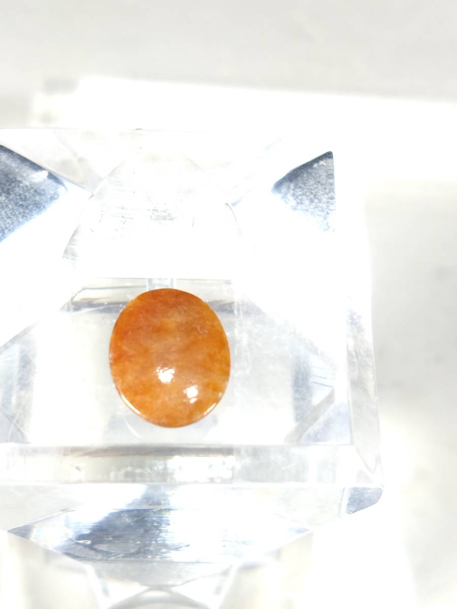 珍品オレンジ翡翠3ctオーバーのルースをご紹介します 在庫処分にしてありますが新品です 翡翠もいろいろな波動や気を吸収する石なので無闇に中古はお売り出来ません