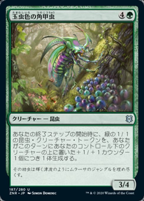 MTG ■緑/日本語版■ 《玉虫色の角甲虫/Iridescent Hornbeetle》★FOIL★ゼンディカーの夜明け ZNR