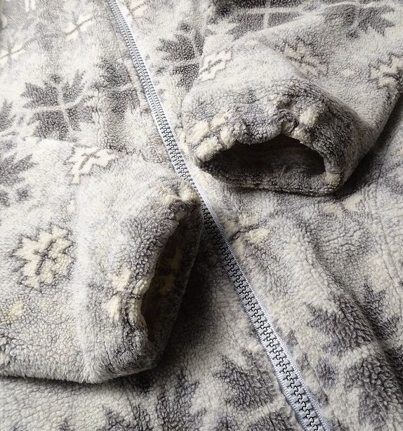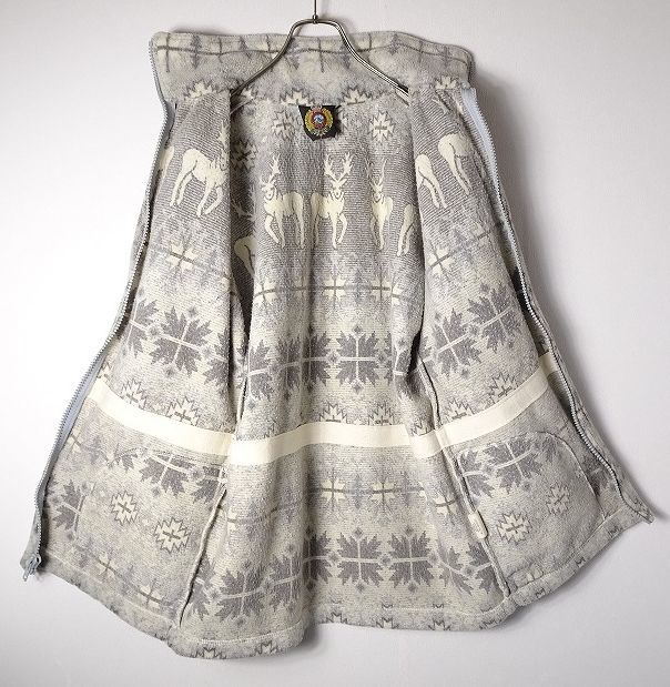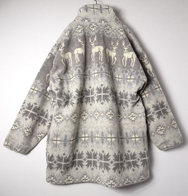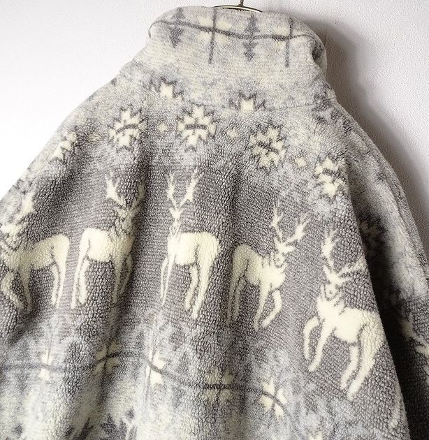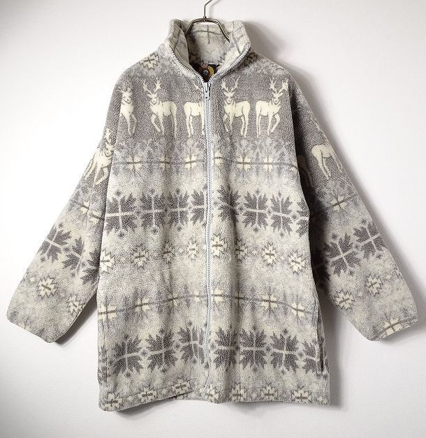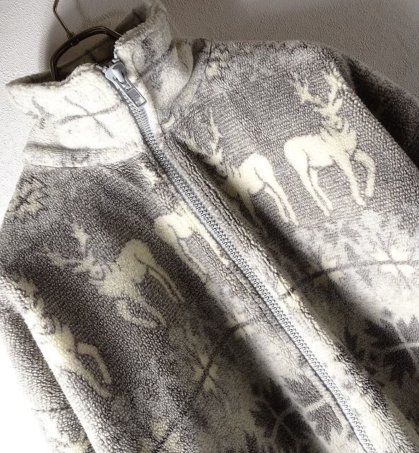SUNBUSTER サンバスター フルジップ フリースジャケット スタンドカラー USA製 鹿 雪柄 スノーフレーク メンズ アウトドア (USA S) グレー系 ●S-890