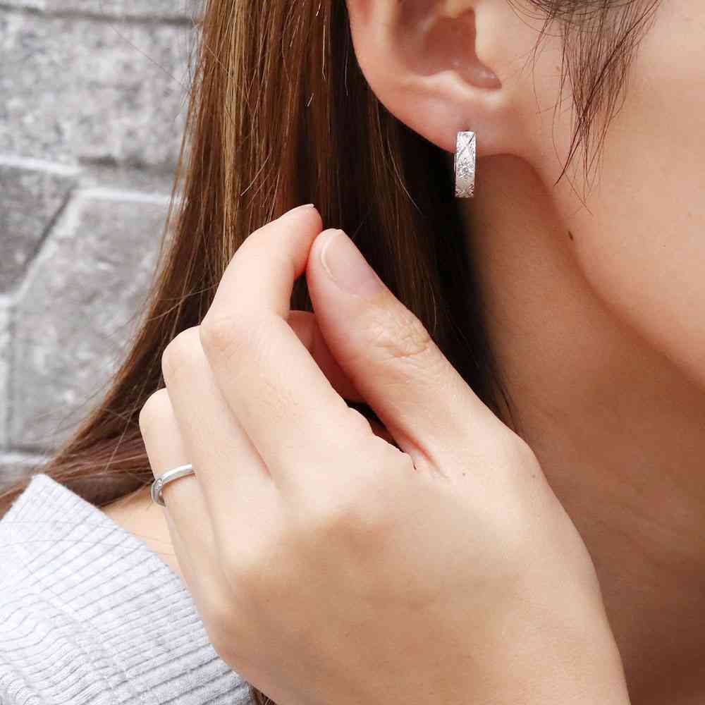 4月誕生石ダイヤモンドを使用したプラチナ製の、レディースフープピアスです。