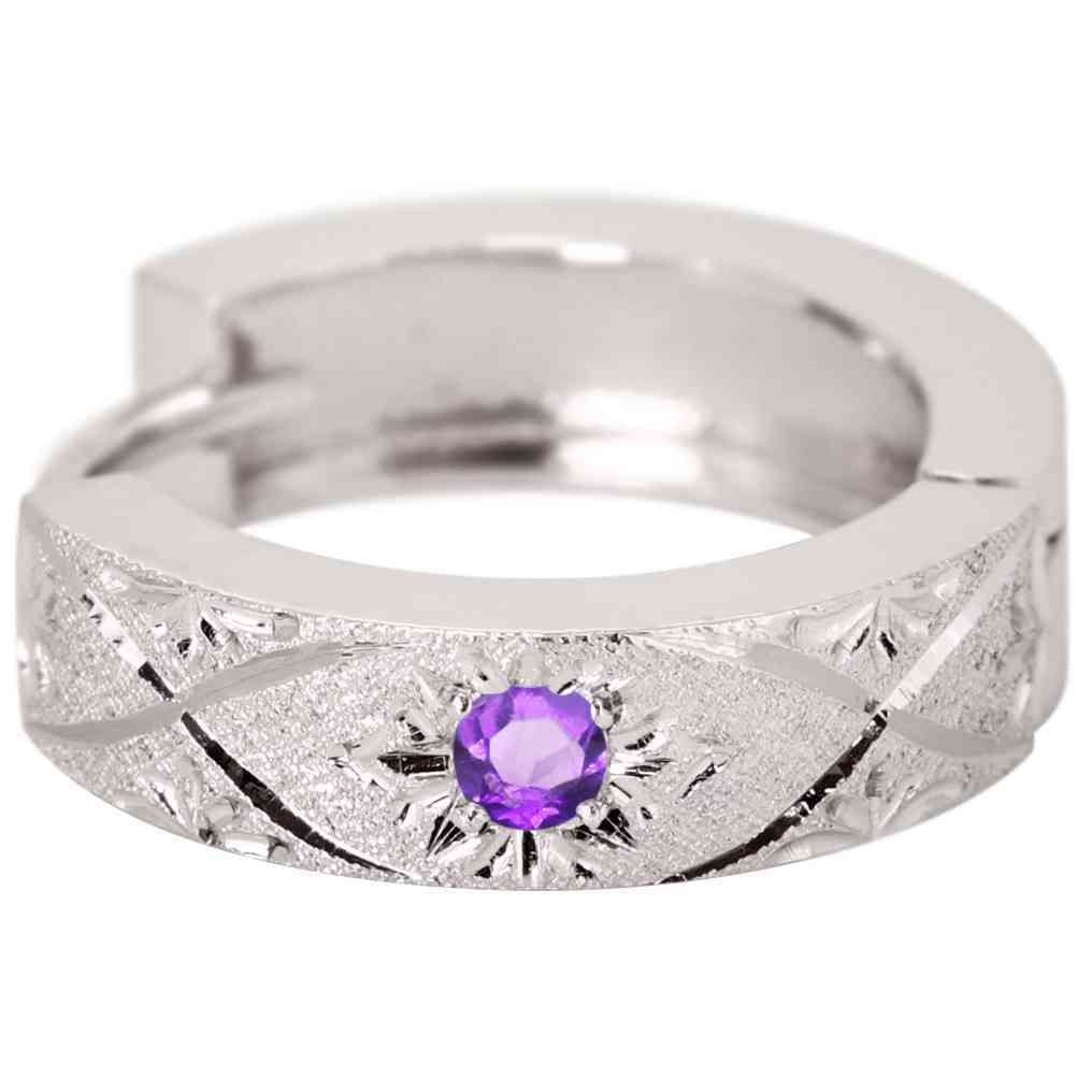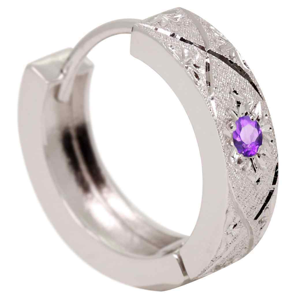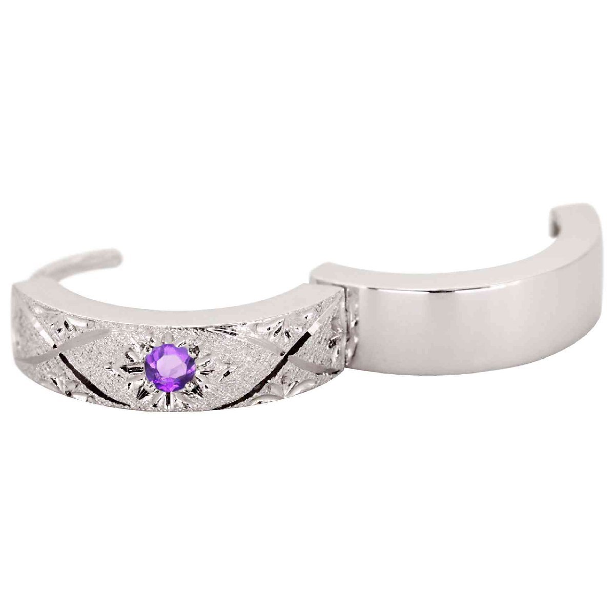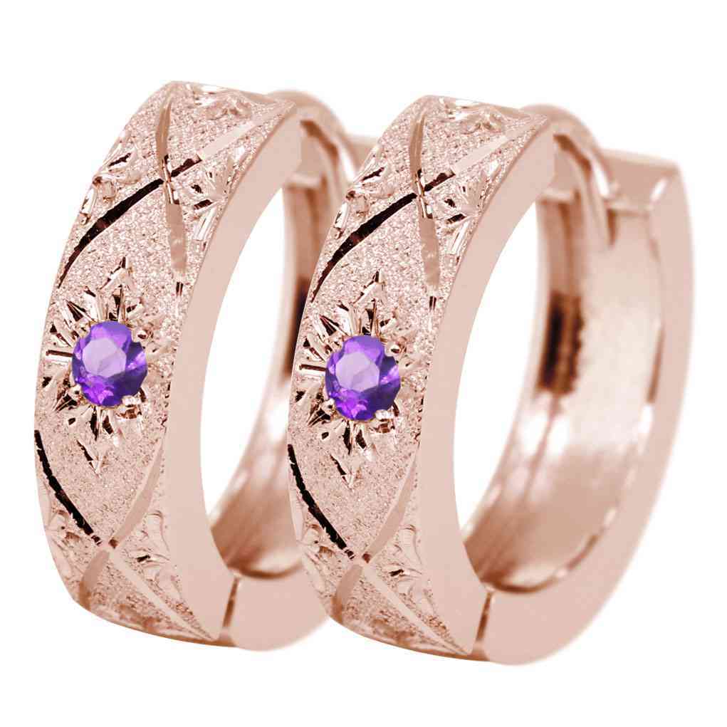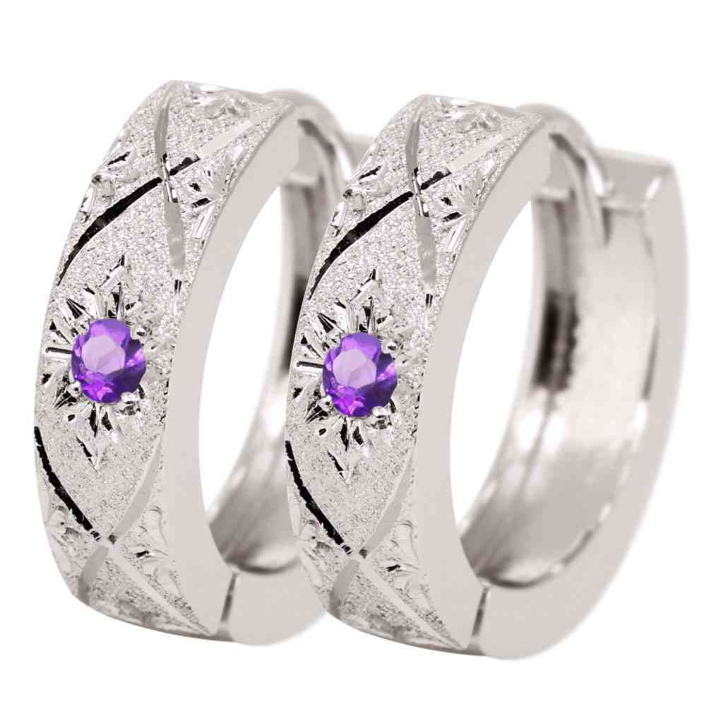 2月誕生石アメジストを使用した18金製の、レディースフープピアスです。