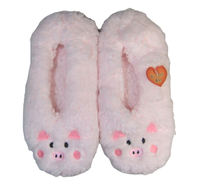ボアルームシューズ スリッパ レディースもこもこあったか 内側ボア 防寒 軽量 底滑り止め付き かわいいぶたの刺繍付き ピンク SLP-9055-PK