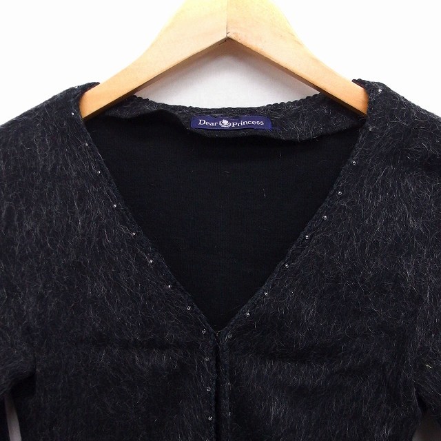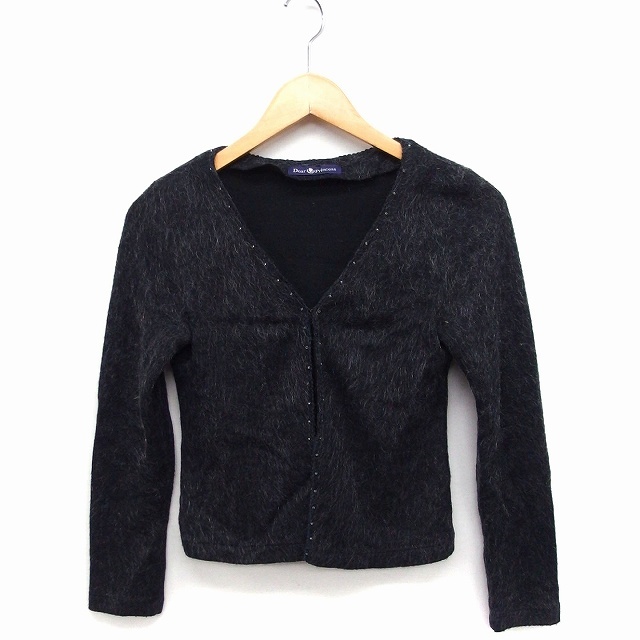 ディアプリンセス Dear princess カーディガン ニット Vネック 長袖 ビーズ装飾 レース チャコール /FT13 レディース