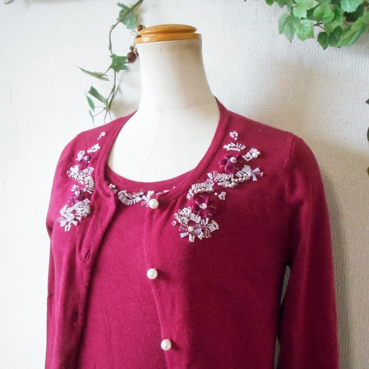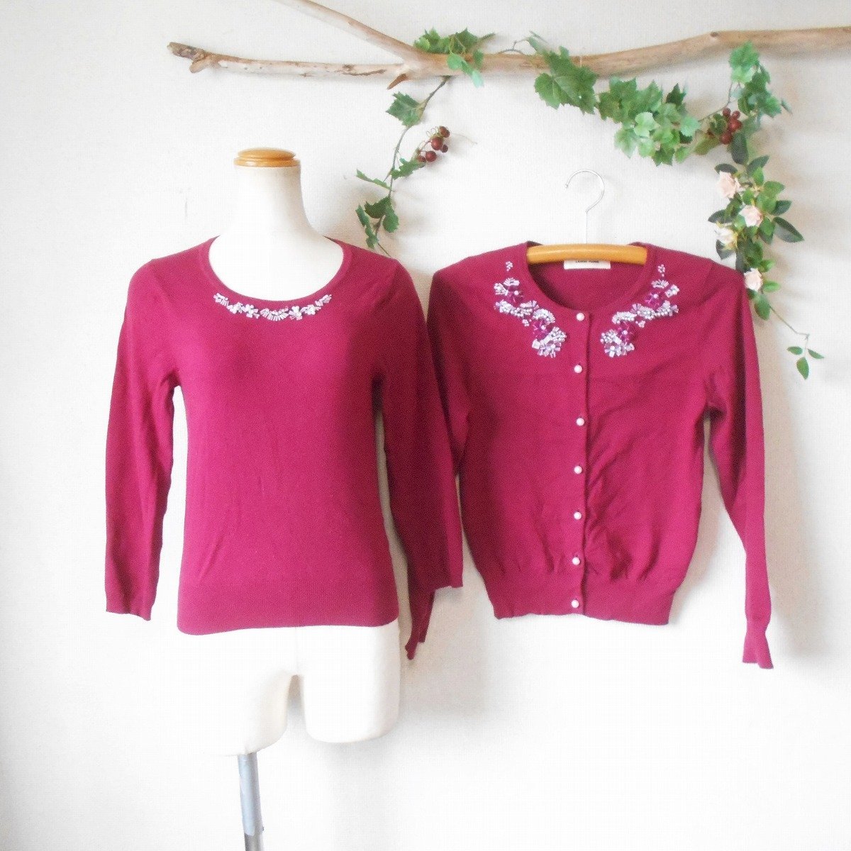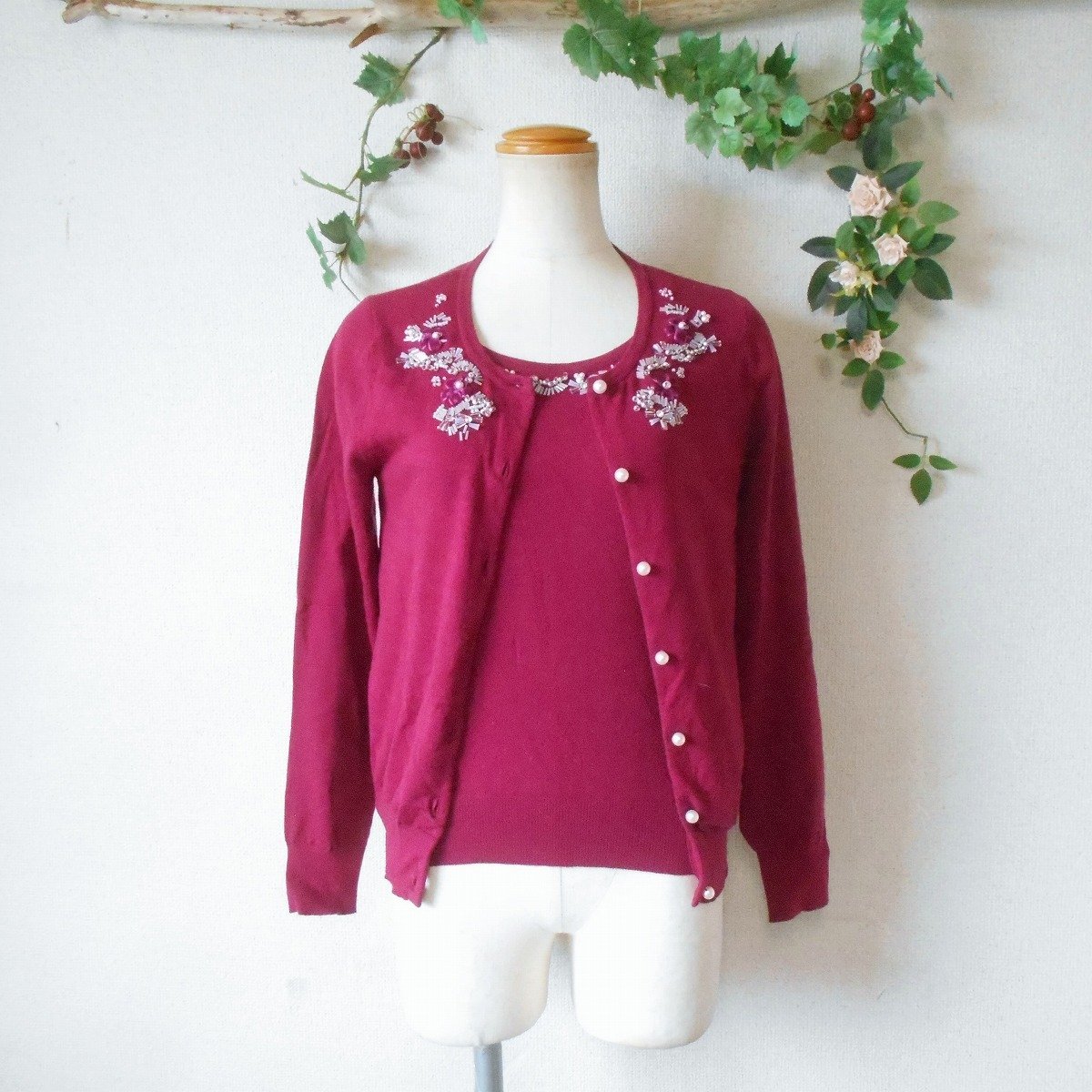7分袖のセーターと長袖カーディガンのセットで、首元にはビーズ装飾の付いた、とっても可愛いセットです。