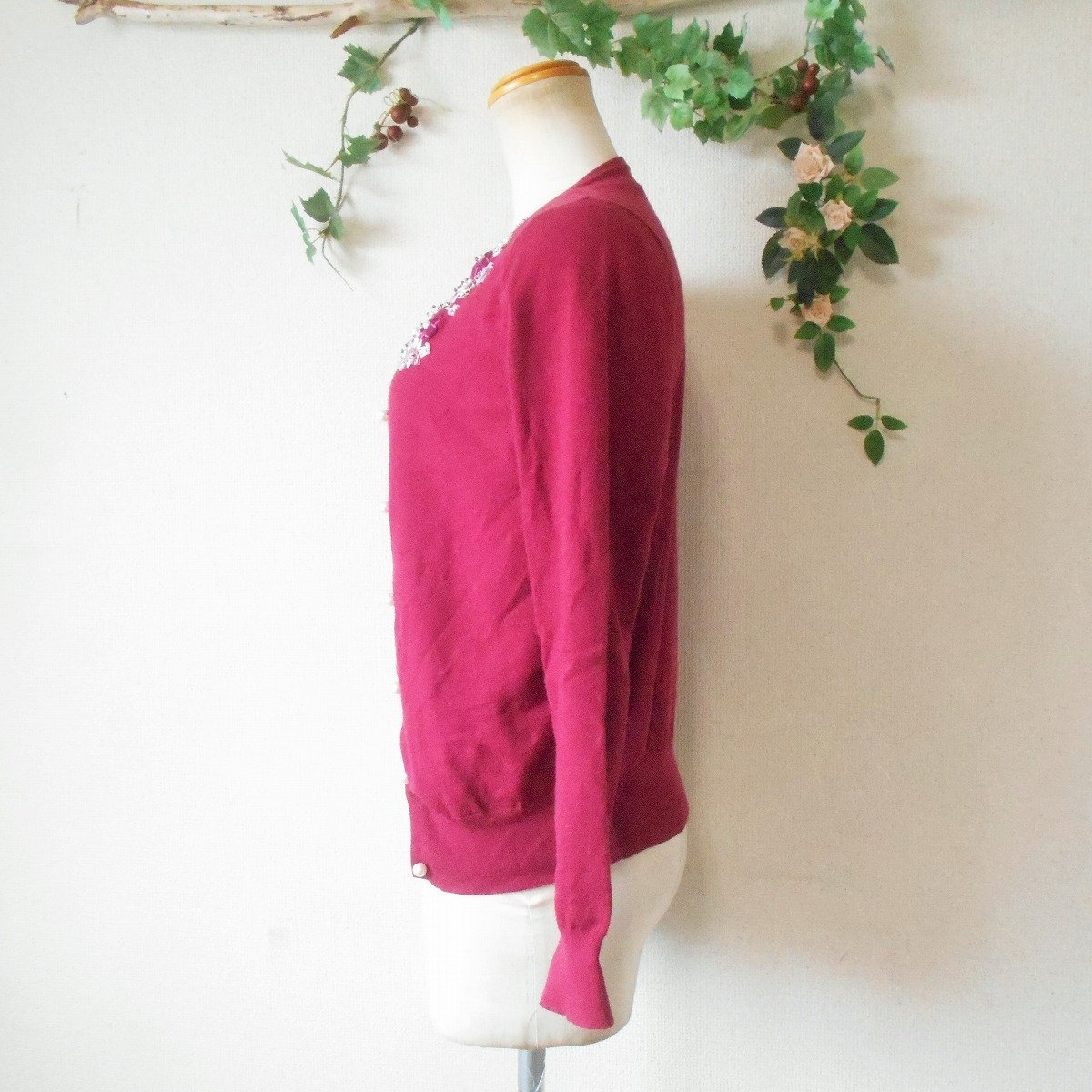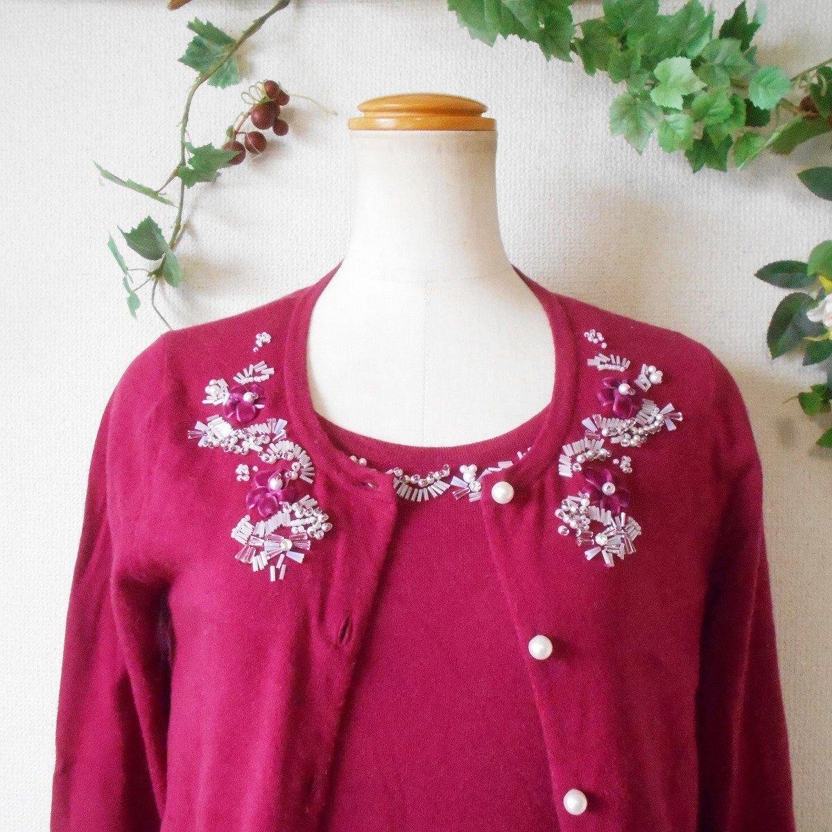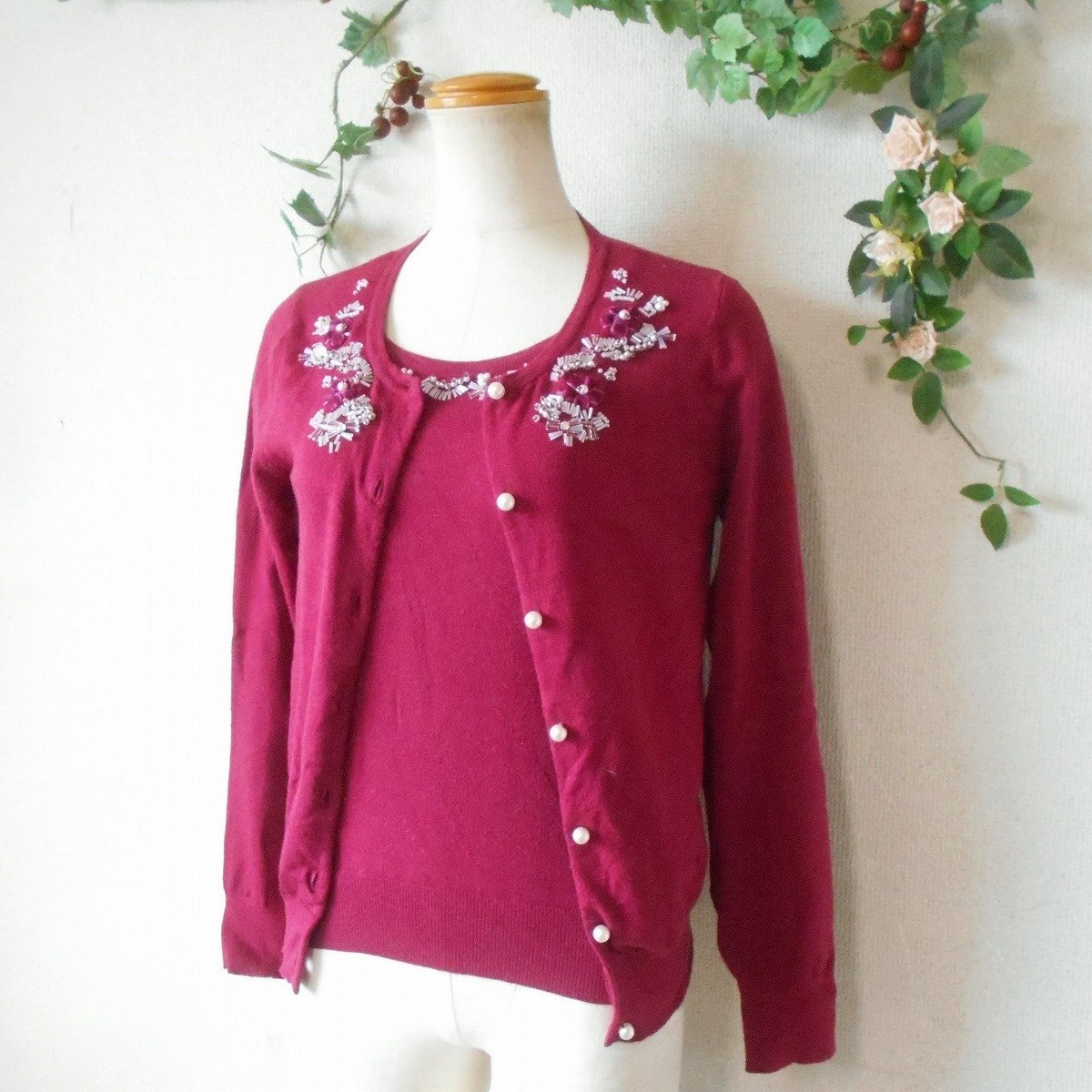 7分袖のセーターと長袖カーディガンのセットで、首元にはビーズ装飾の付いた、とっても可愛いセットです。