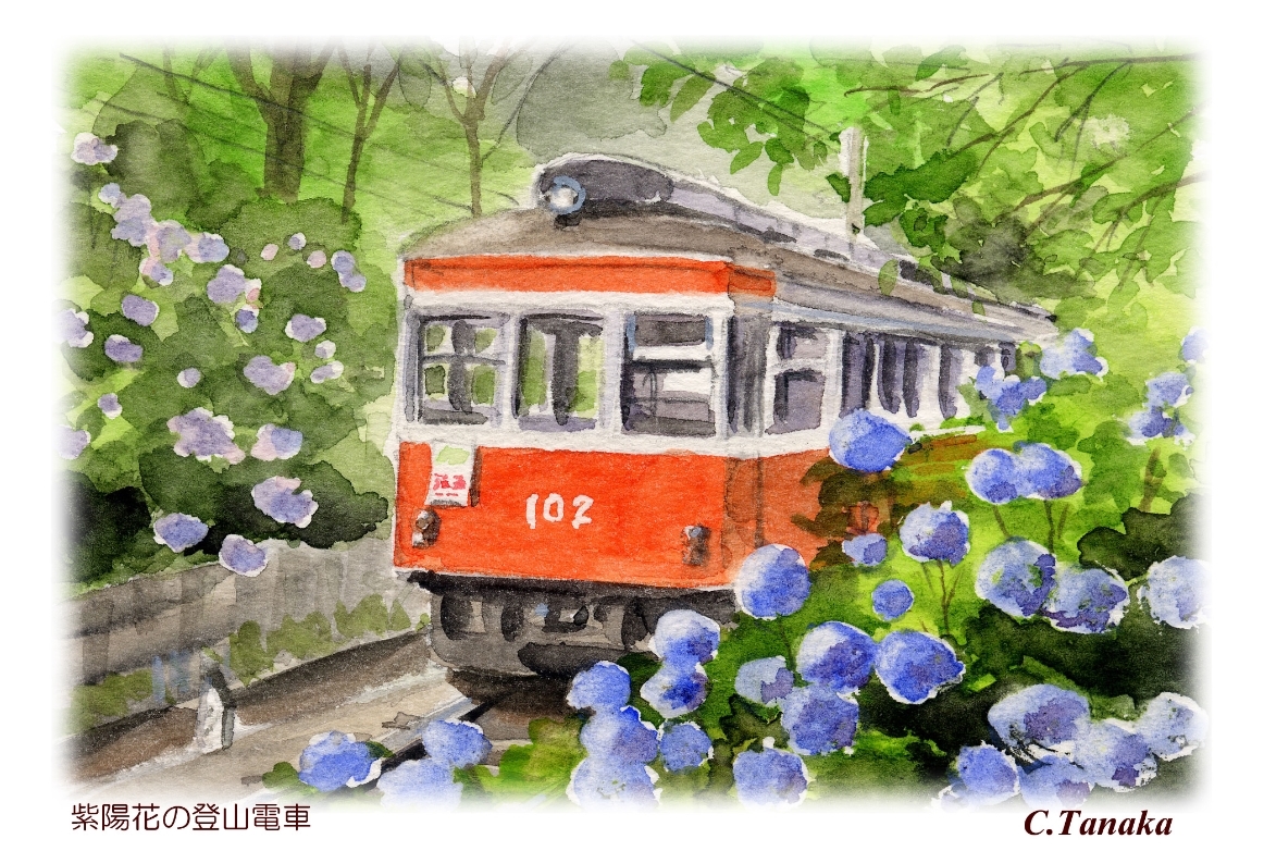 ・箱根登山鉄道の水彩画ポストカード(印刷ポストカード)2枚付です!