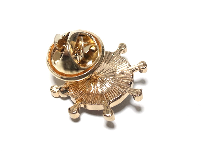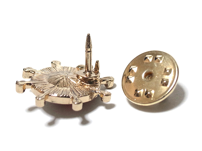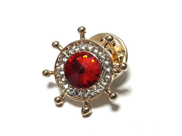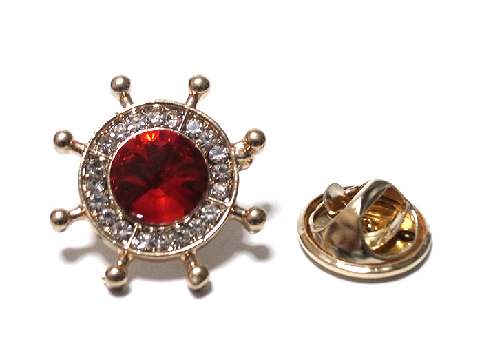 ラペルピン★ピンズ 操舵輪 ステアリング・ホイール マリン ゴールド×レッド pin-1015