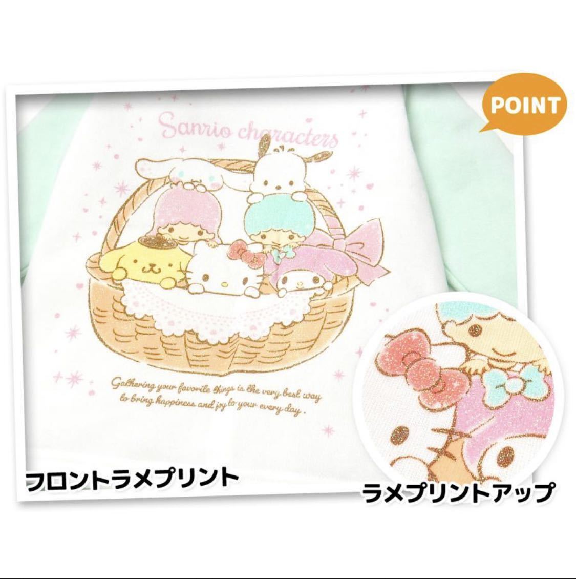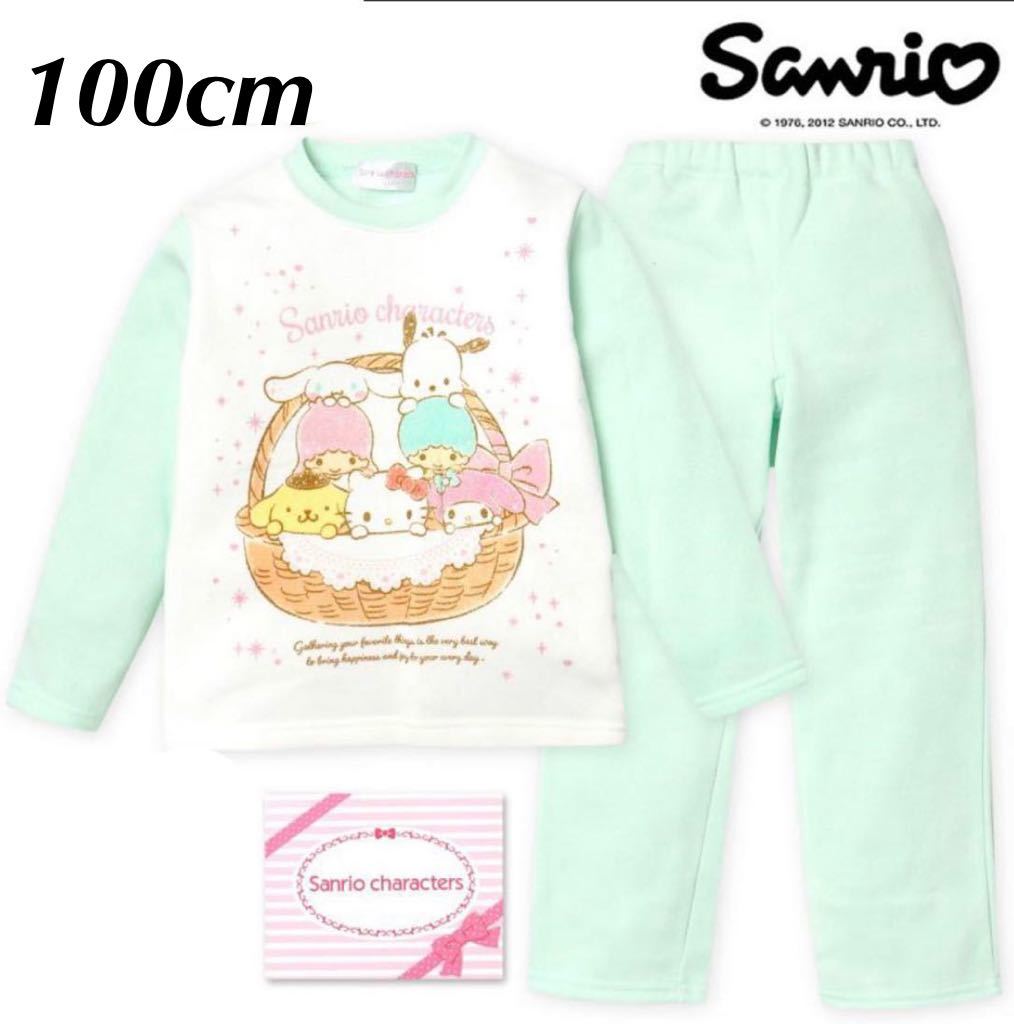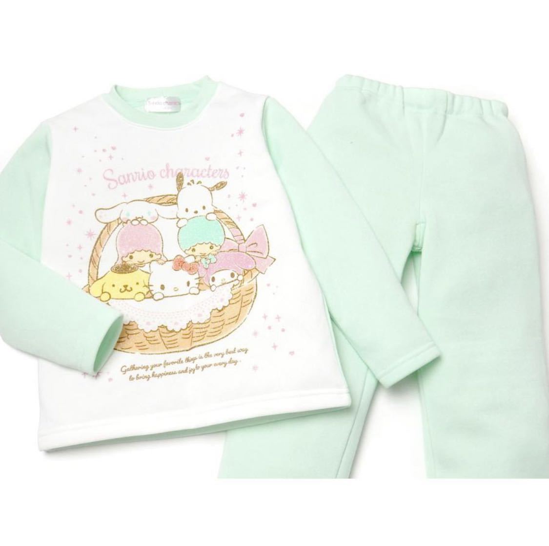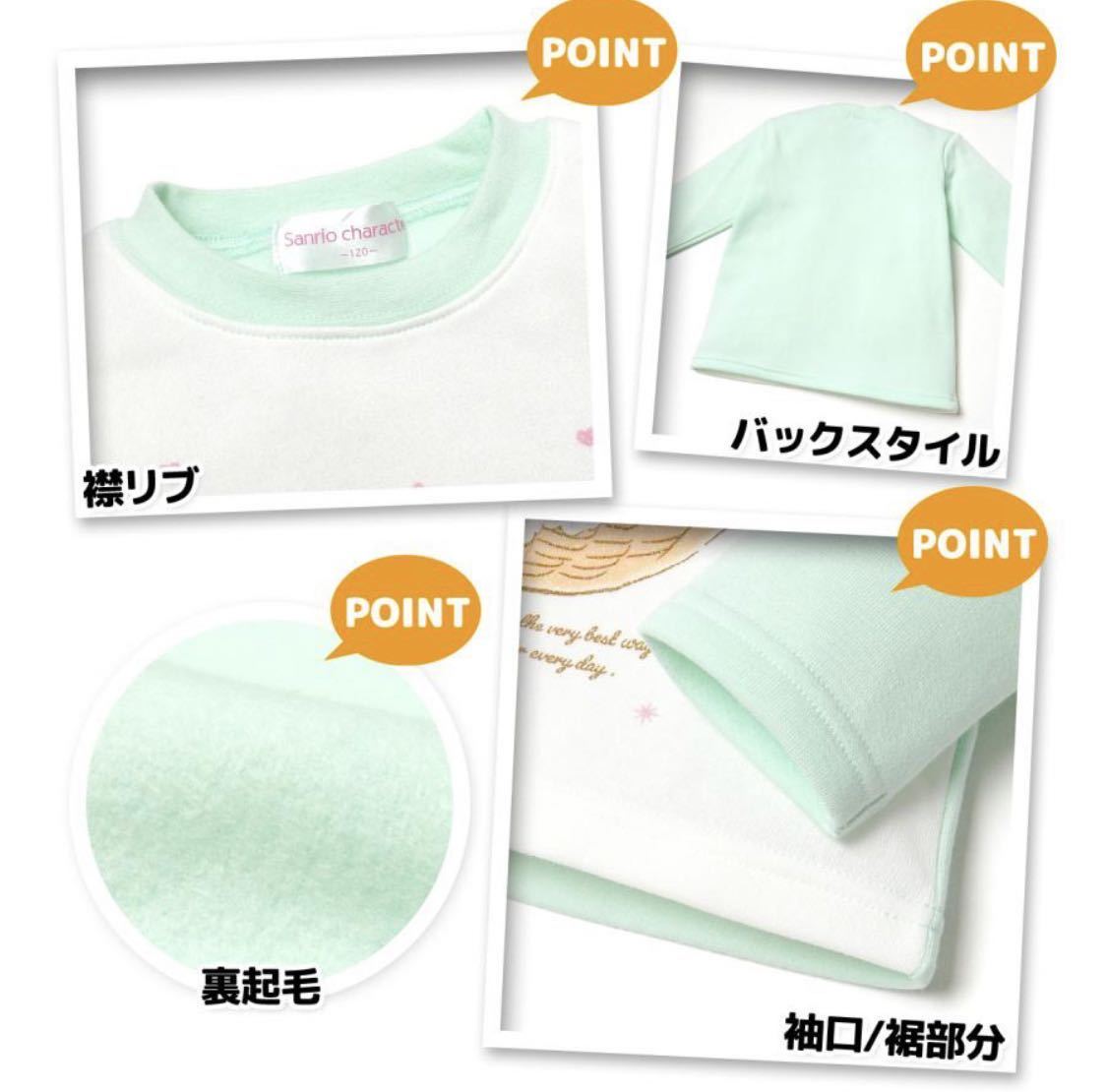 新品19385 サンリオキャラクターズ100cm ミント 長袖裏シャギー起毛パジャマ ラメプリントパジャマ 長袖上下セットあったか素材 保温性