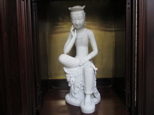 大理石?白玉?仏像/仏壇 ミロク菩薩像(管03)