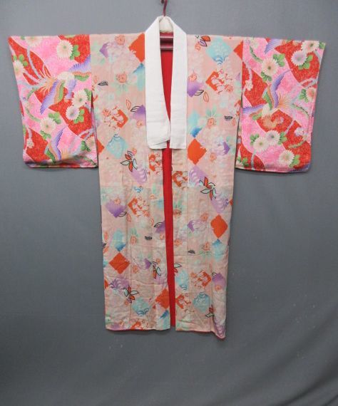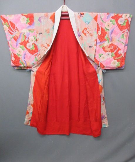 【政】32153 錦紗長襦袢 縮緬 着物 打掛 振袖 きんしゃ 古着