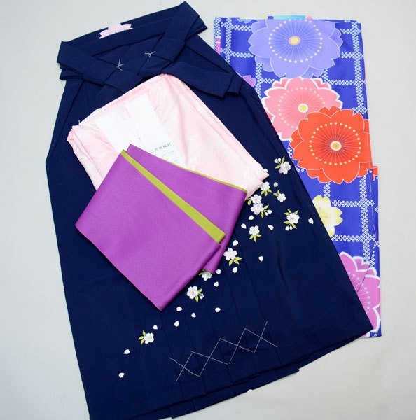 | 項目 | 着物袴フルセット(適合身長:144cm~150cm:ジュニア用へお仕立て直し致します。) ・二尺袖着物 ・二尺袖長襦袢(半襟付き) ・袴 ・袴下帯(浴衣帯にも使用できます。) |