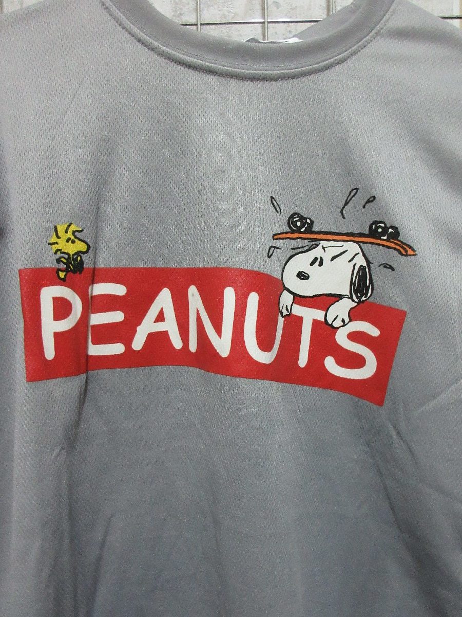 J224/スヌーピー メンズ 半袖 Tシャツ ハニカムメッシュ スケボー 柄 灰 S