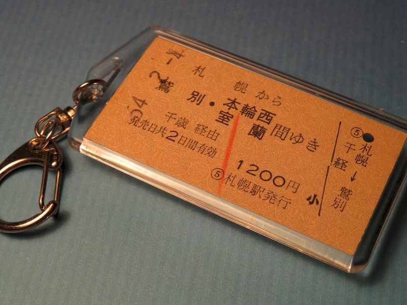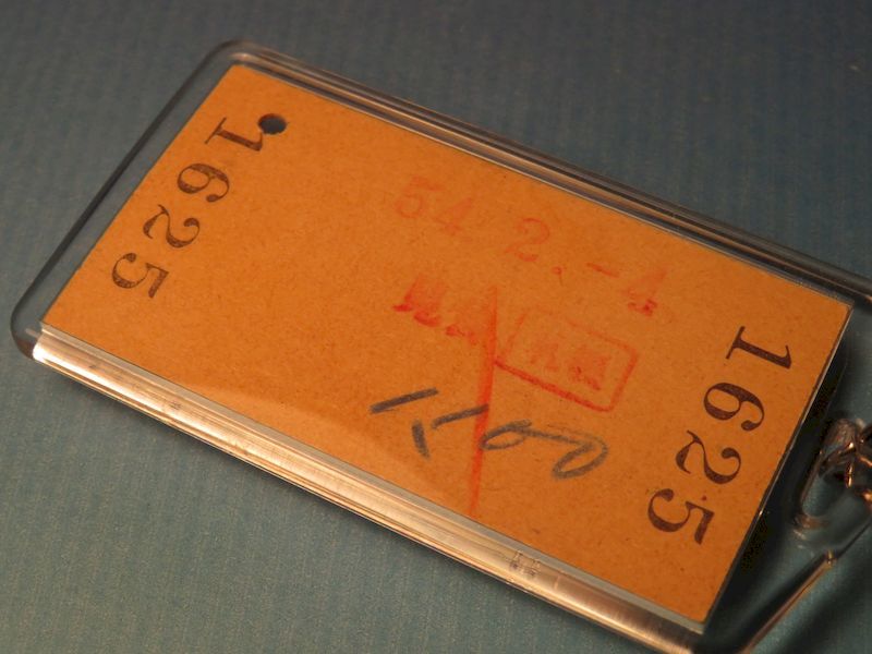 ・使用済みの硬券(実際に使用された切符・A型券)を、透明キーホルダーにしたものです。