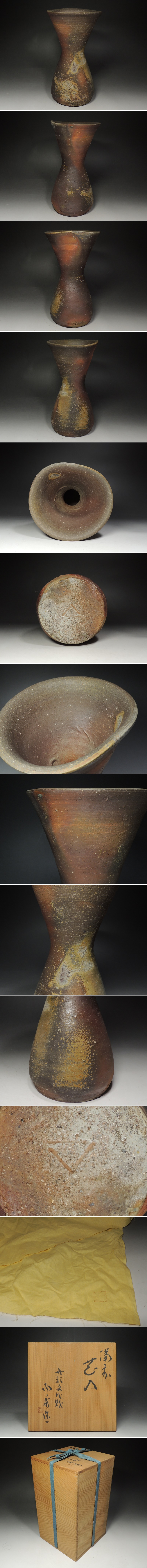 | ■備前■人間国宝 山本陶秀・花入・花瓶・共布・共箱・f454 | ||||||||||||||||||||