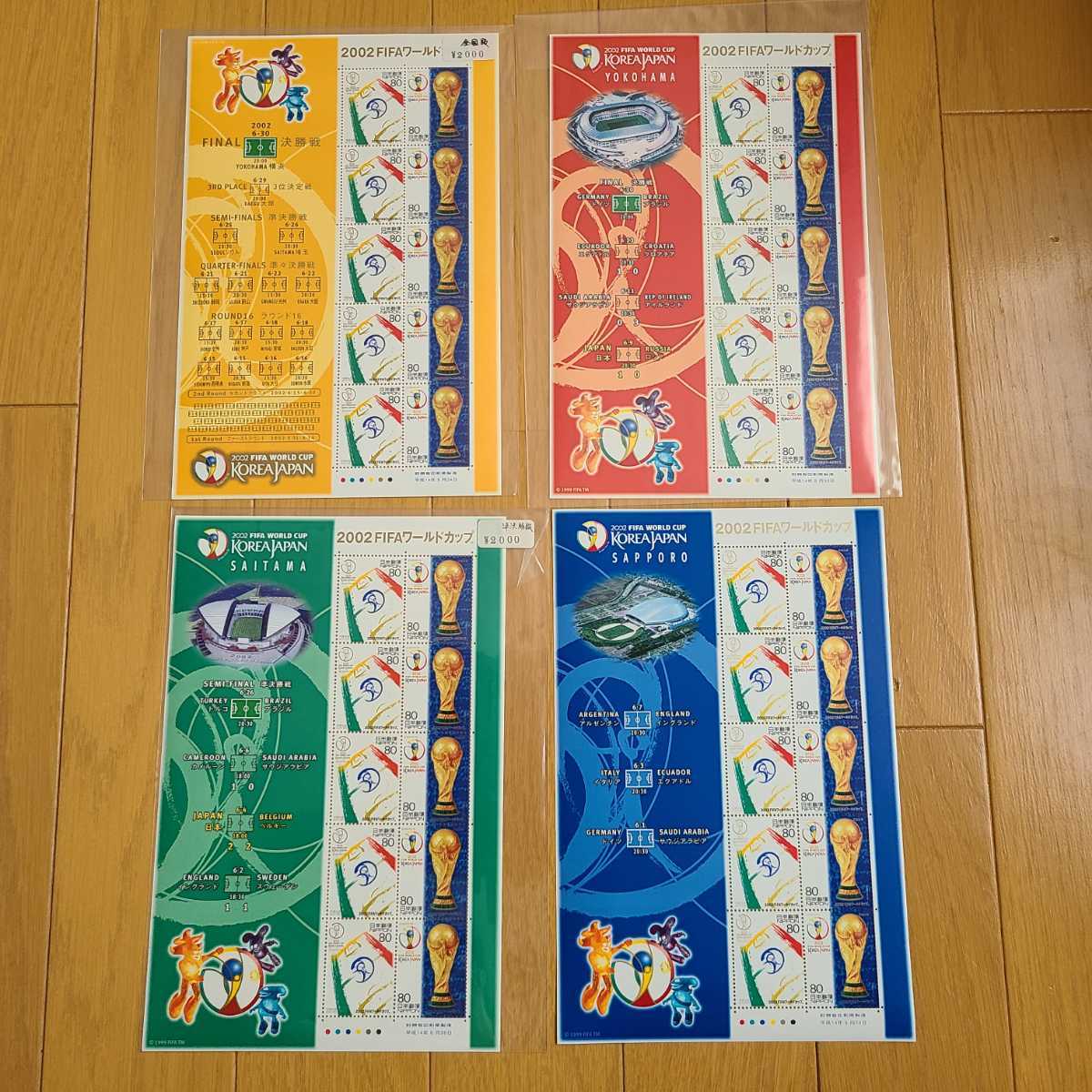 「未使用切手」2002 FIFAワールドカップ JAPAN KOREA 4シート 全国版 準決勝版 札幌会場版 横浜会場版 日本 韓国 R411