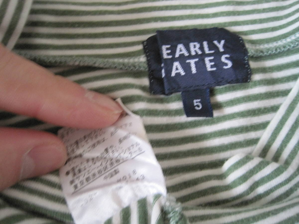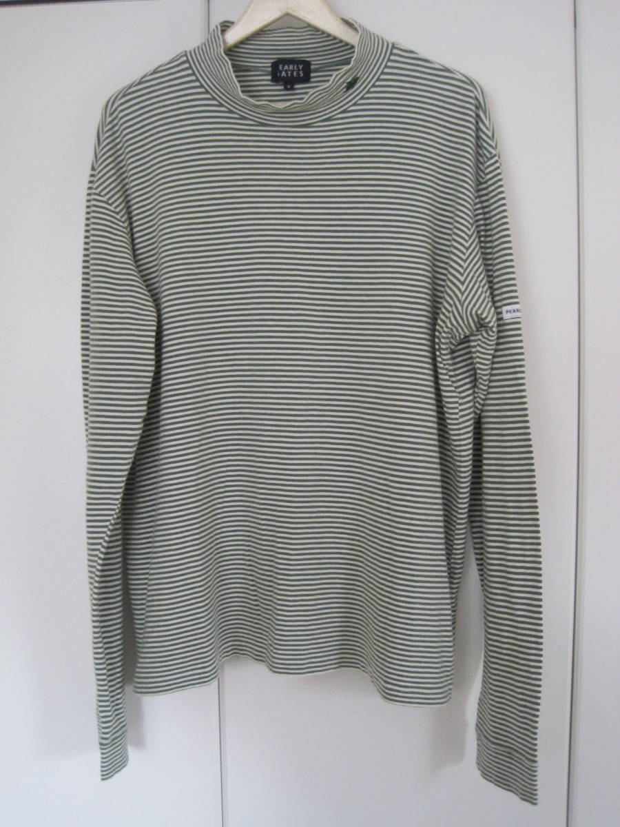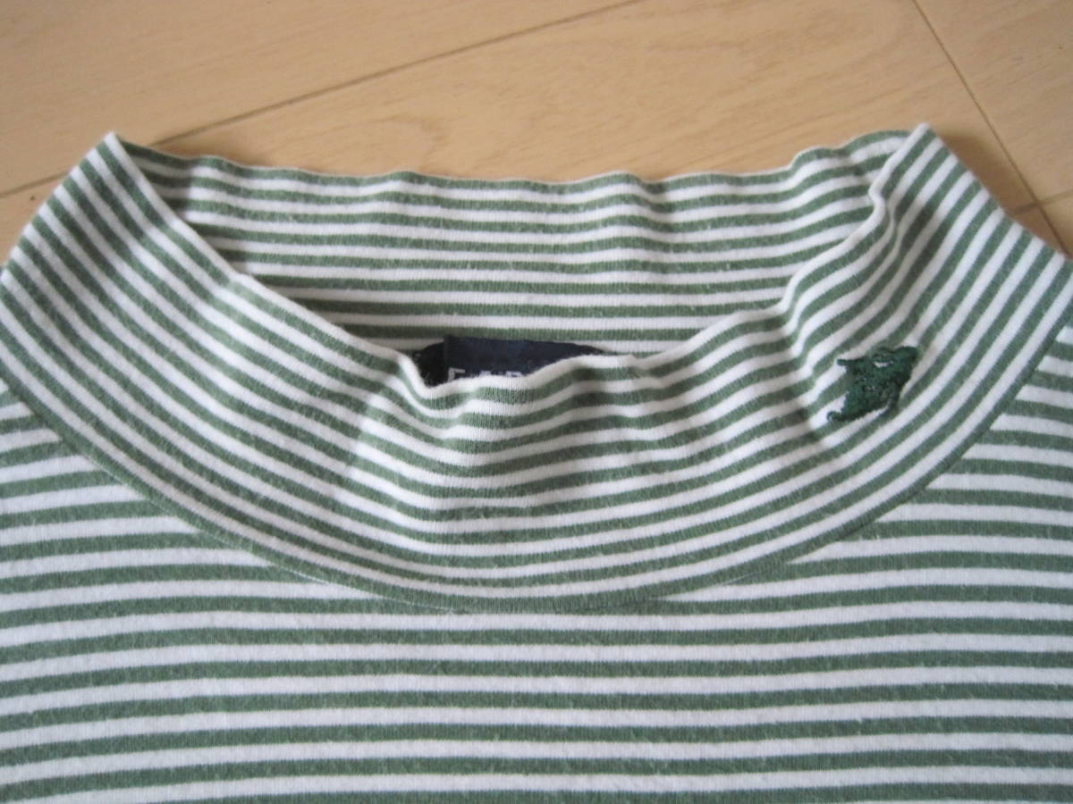 パーリーゲイツ ハイネック ボーダーカットソー になります。着用感がありますが、特に目立つ傷、汚れはありません。カラーは緑×白、サイズは5、綿94%、ポリウレタン6%です。肩幅48cm、袖丈64cm、身幅53cm、着丈62cmです。素人の採寸ですので若干の誤差、商品状態はご了承ください。 落札後は、ノークレーム、ノーリターン、ノーキャンセルでお願いします。発送方法はレターパックです。ほかにも色々出品していますので良かったらご覧ください。
