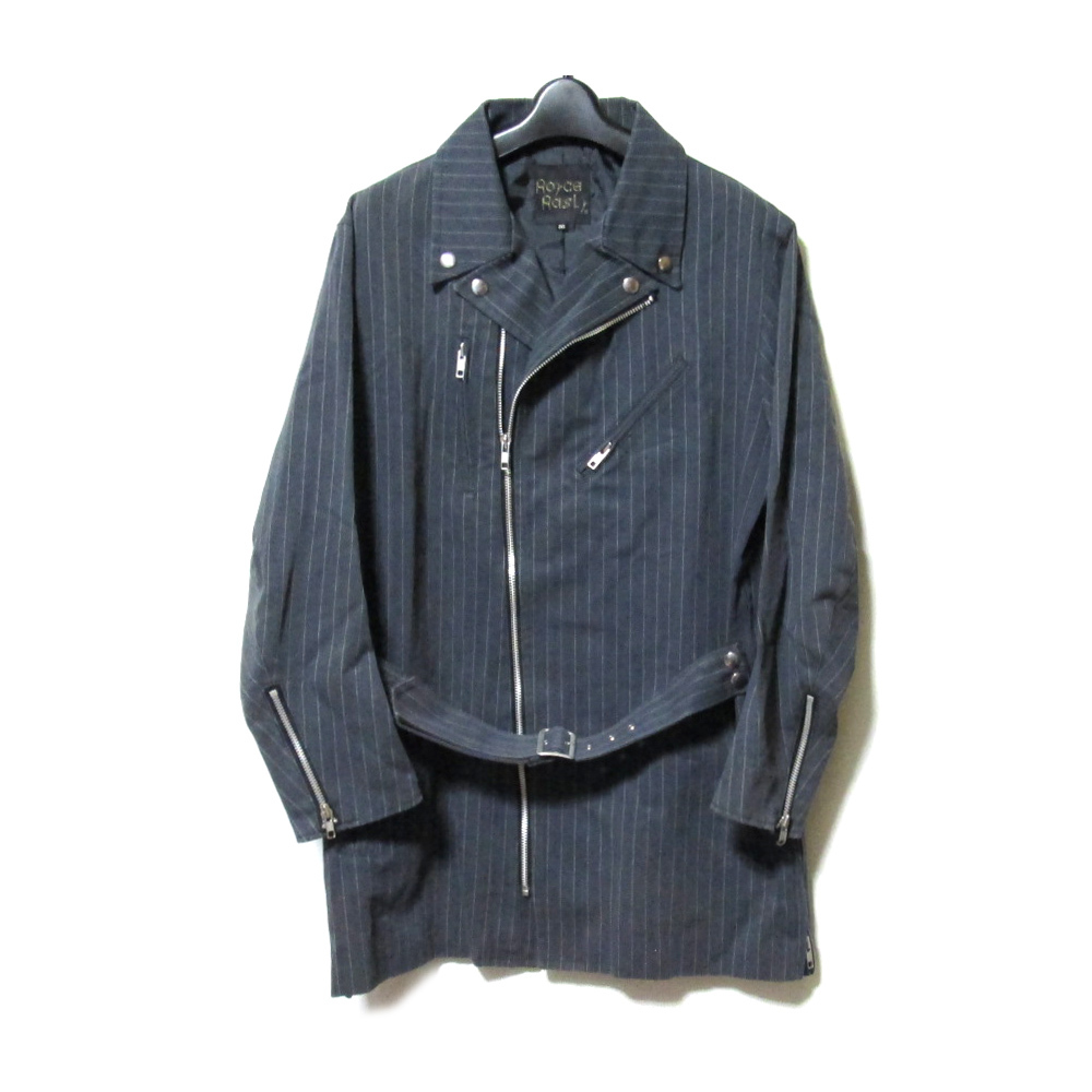 ROYCE RASLY のパンクな印象のライダースジャケットです。ロングデザインなのでコート感覚でおめしいただけます。ユニセックスモデルです。