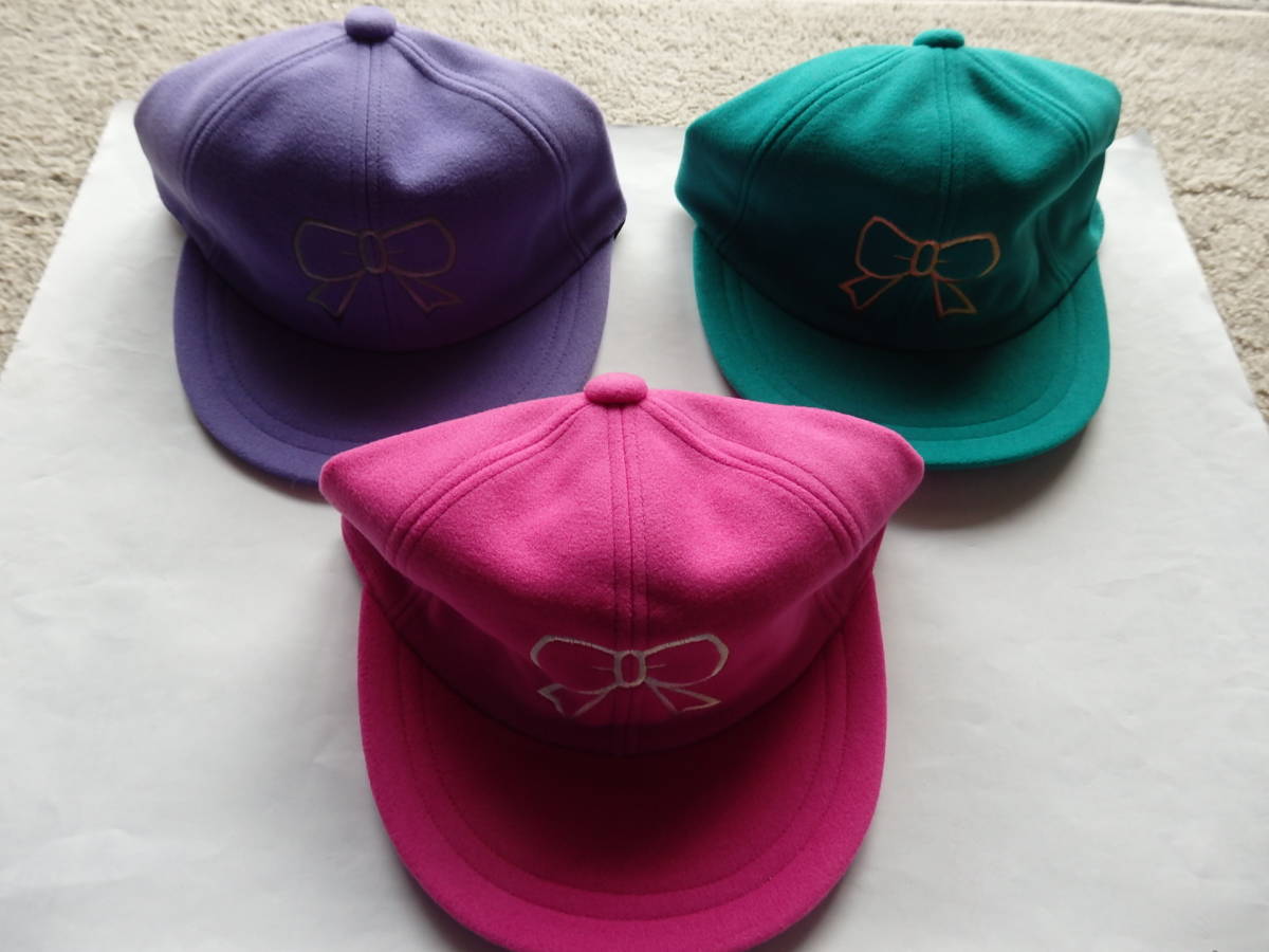 子供用フリースキャップ 54cm 3個 リボンマーク ピンク・紫・緑