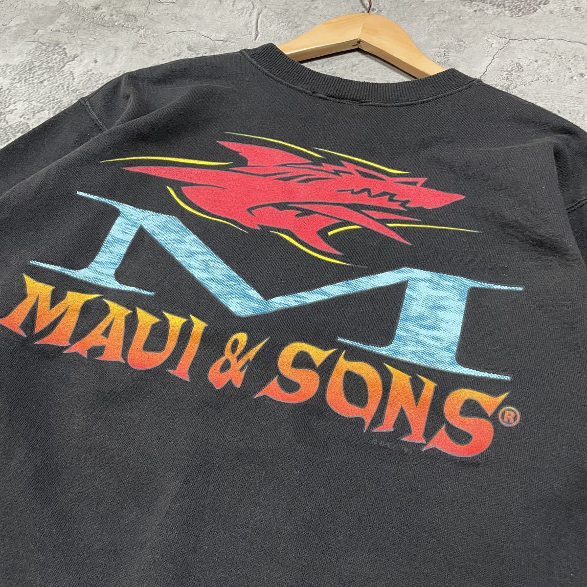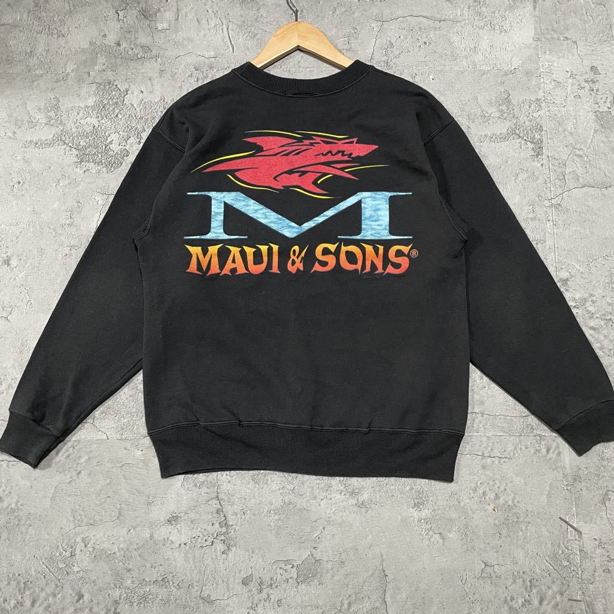 90s USA製 MAUI and Sons マウイアンドサンズ スウェット トレーナー サーフィン ストリート ビッグロゴ 両面プリント シャーク 玉FL1890 ヴィンテージ vintage