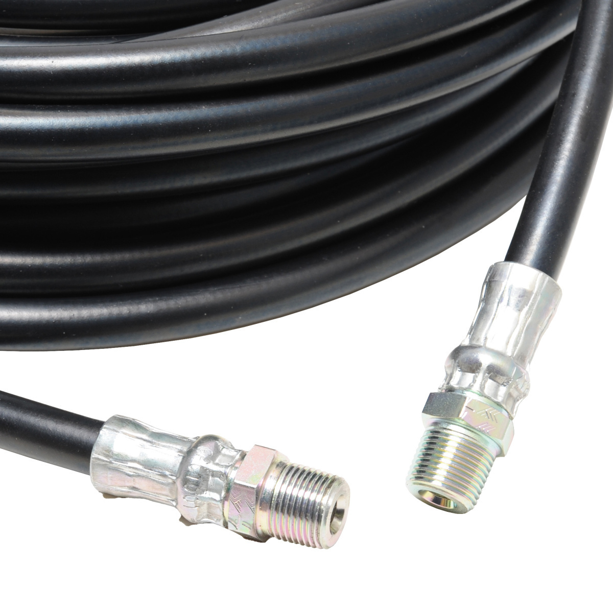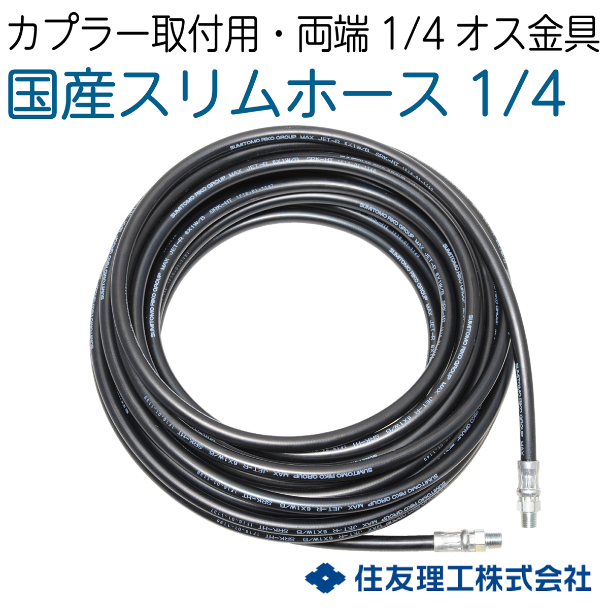 両端オス金具付ホース両端に、1/4オスネジ(テーパーネジ)の金具が加締めてあります。カプラを再利用するためのホースです(カプラは単品でも販売しています)