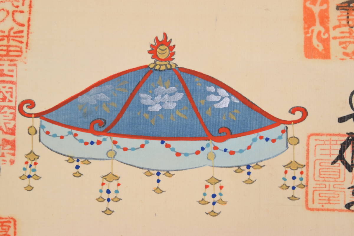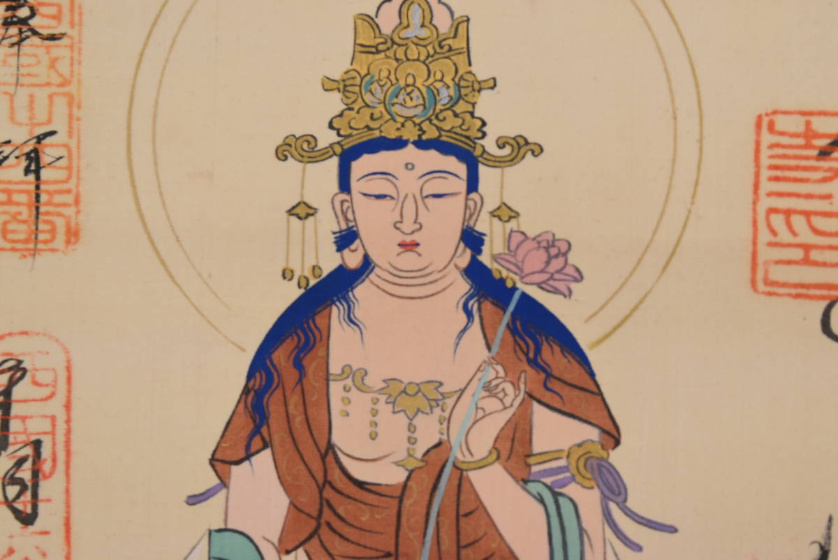 【作品状態】 本紙は絹本肉筆です。本紙は多少の時代感あり、薄汚れ、数ヶ所のシミあります。表装は多少の浅い巻シワあります。