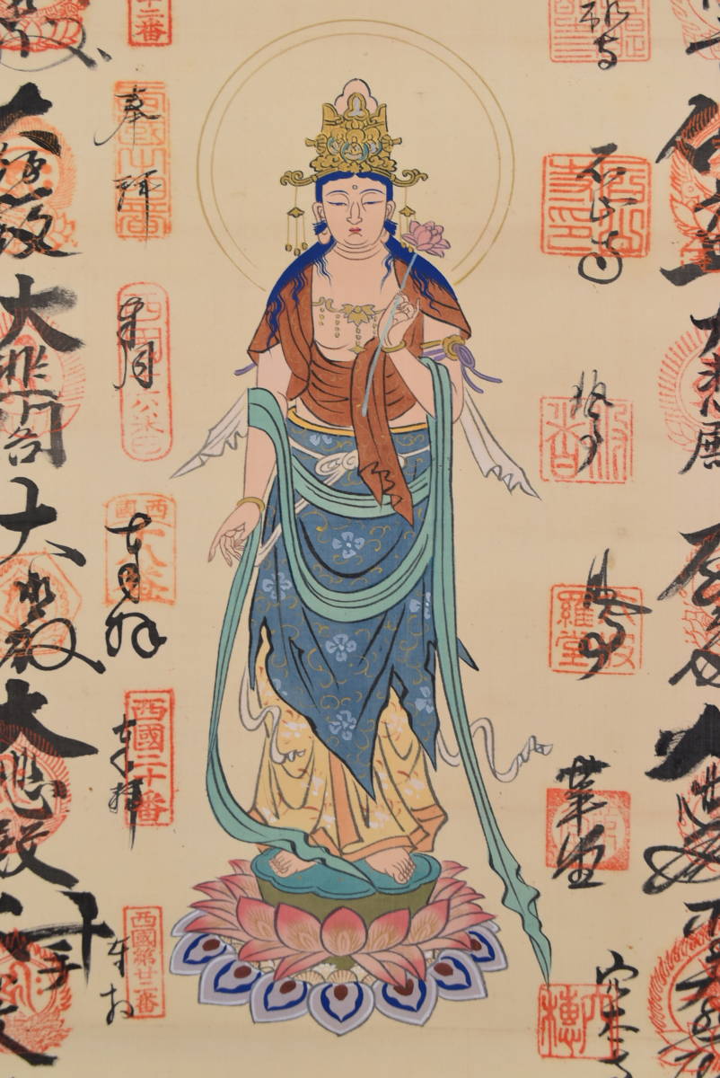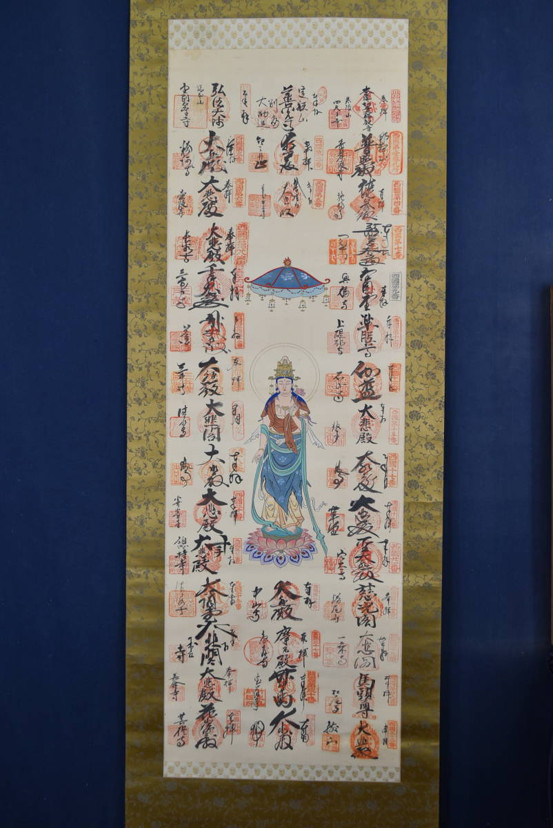 西国 三十三ヶ所霊場集印肉筆掛軸//掛軸☆宝船☆AA-494