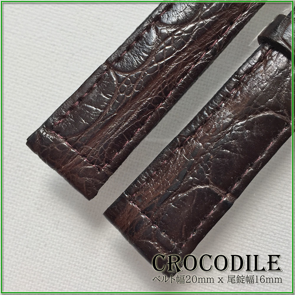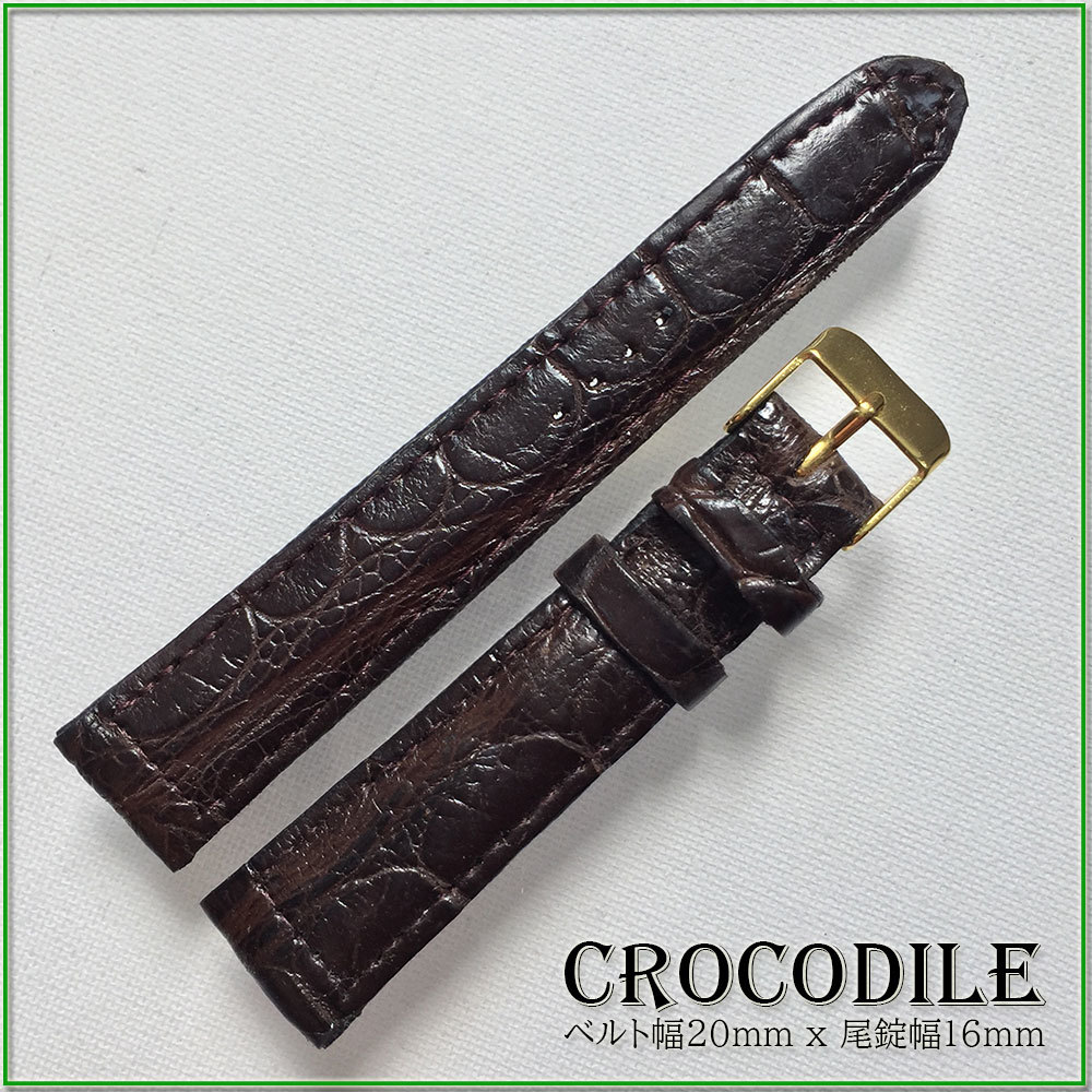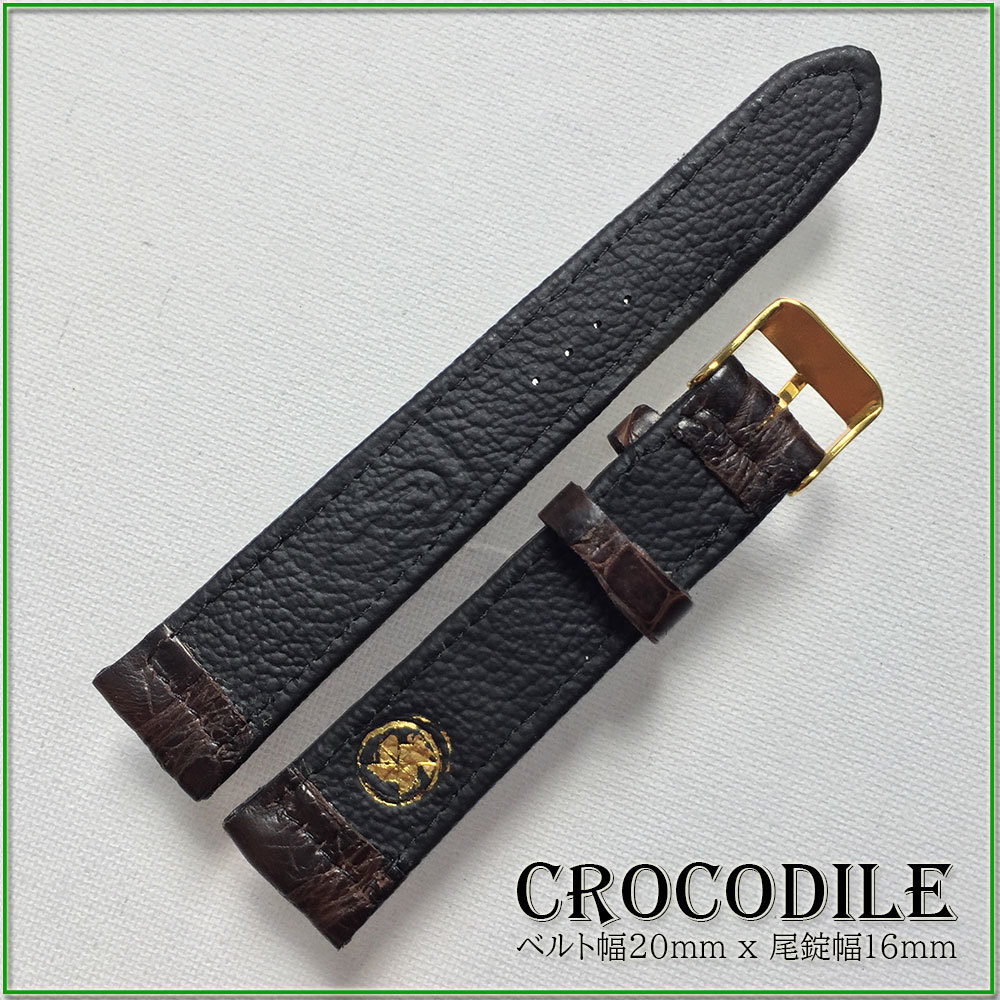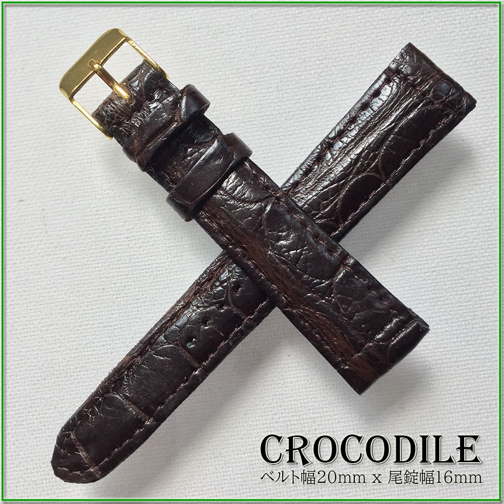 SALE!革アツ 20mm 本革 クロコダイル イタリアンブラウン 玉符模様 ワニ革 時計ベルト GOLD BUCKLE 金箔刻印 高品質 クロコ バネ棒付
